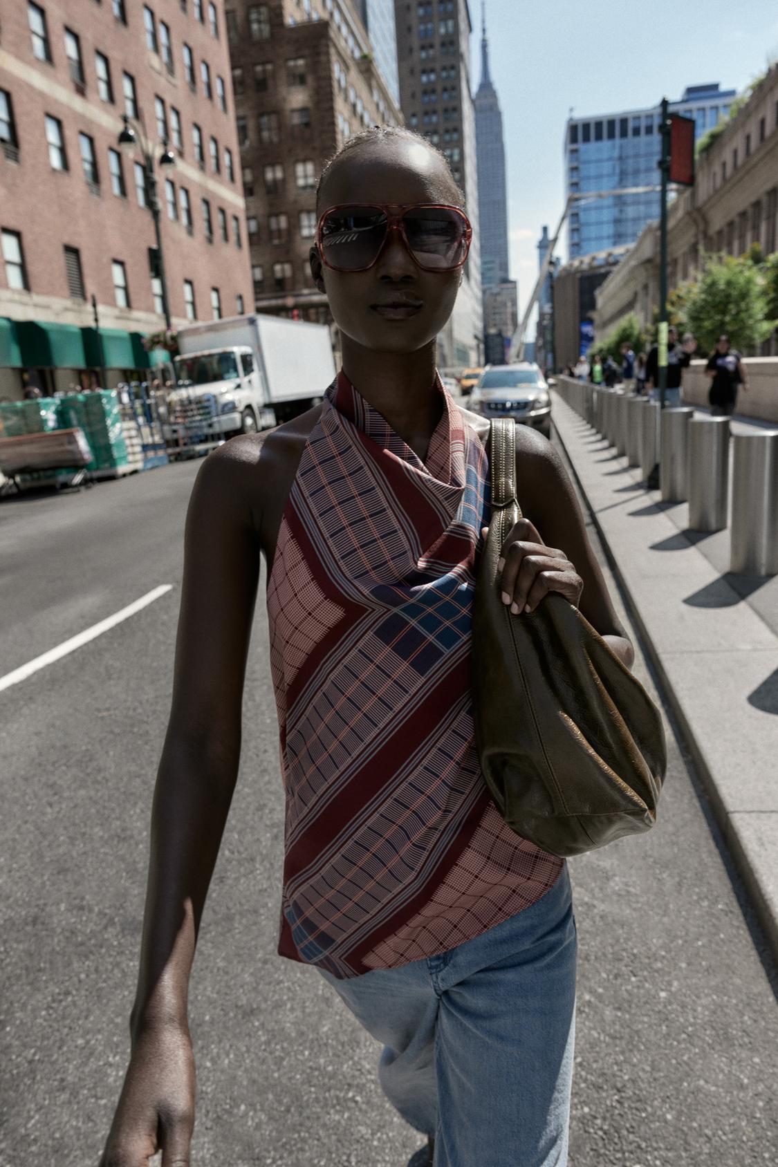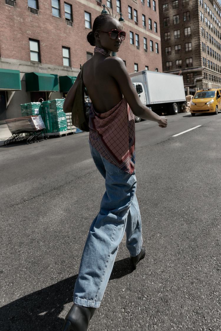ZARA ТОП ХАЛТЕР С АСИММЕТРИЧНЫМ ПРИНТОМ, РАЗНОЦВЕТНЫЙ