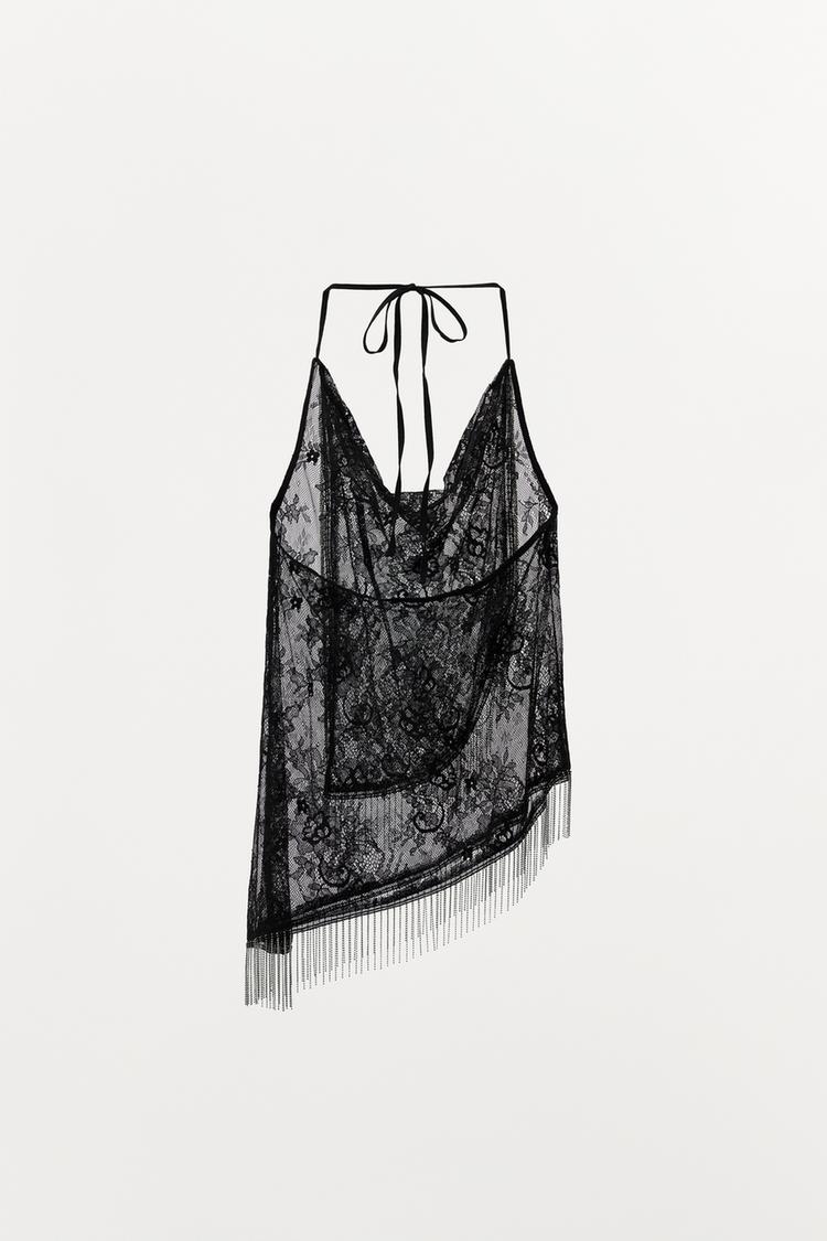 ZARA ТОП-ХАЛТЕР С БУСИНАМИ, ЧЕРНЫЙ