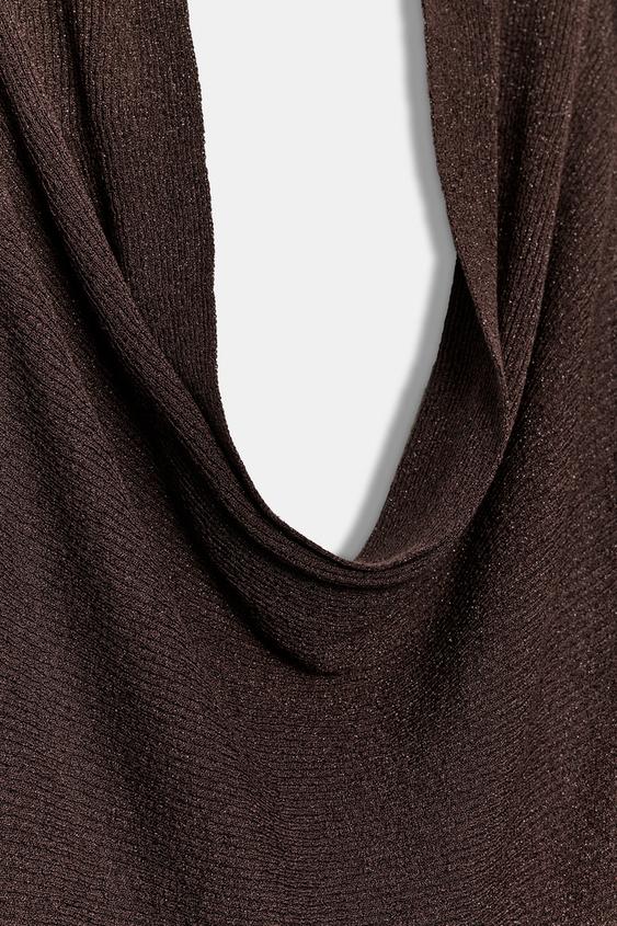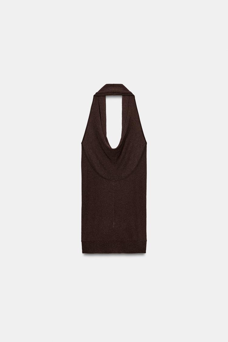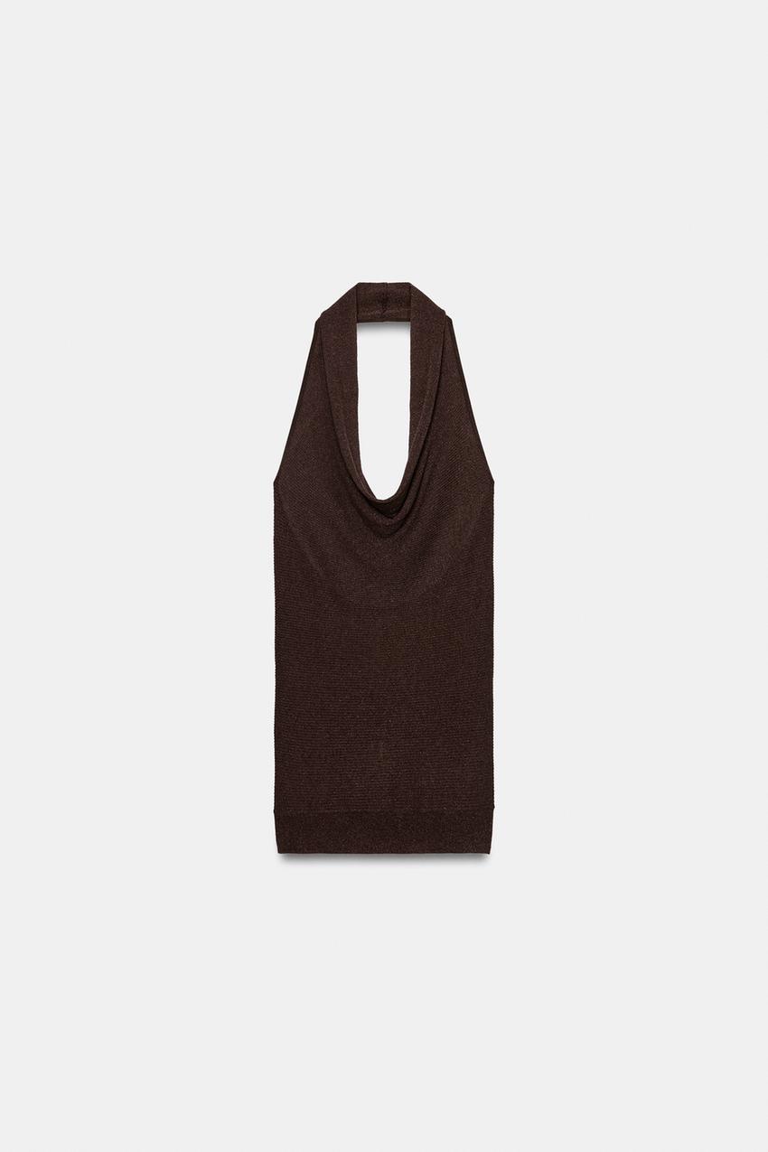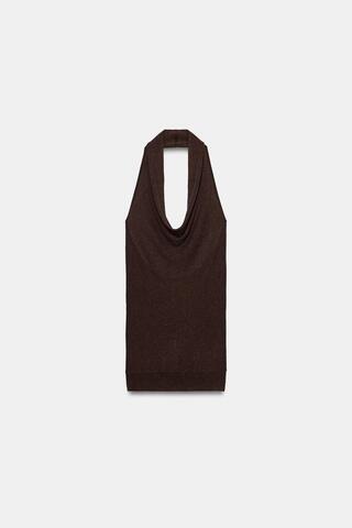 ZARA ТОП ХАЛТЕР В РУБЧИК С БЛЕСТЯЩЕЙ НИТЬЮ, КОРИЧНЕВЫЙ