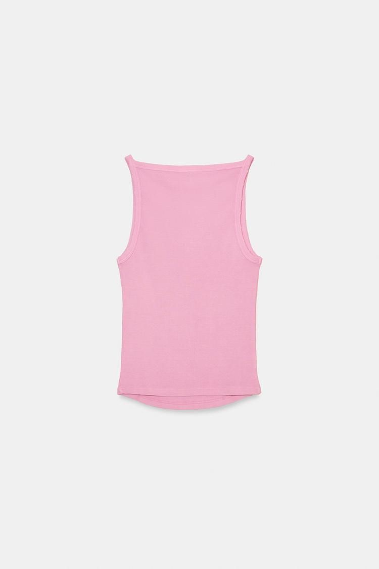 ZARA ТОП ХАЛТЕР В РУБЧИК С ЭФФЕКТОМ ПОТЕРТОСТИ, РОЗОВЫЙ