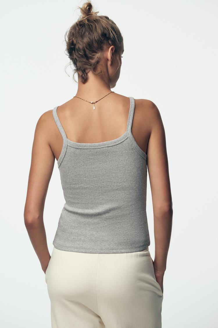 ZARA ТОП ХАЛТЕР В РУБЧИК, СЕРЫЙ МЕЛАНЖ