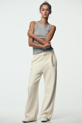 Топ с горловиной халтер и без рукавов. Ткань в рубчик.