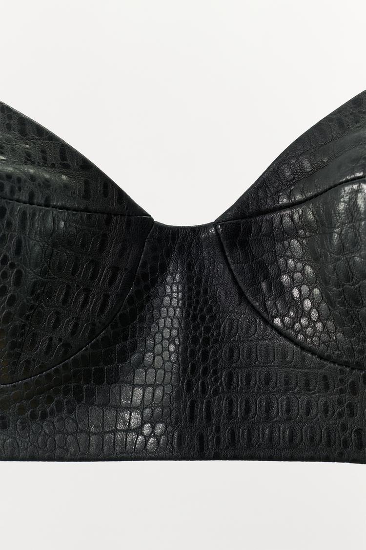 ZARA ТОП ИЗ 100% КОЖИ, ЧЕРНЫЙ