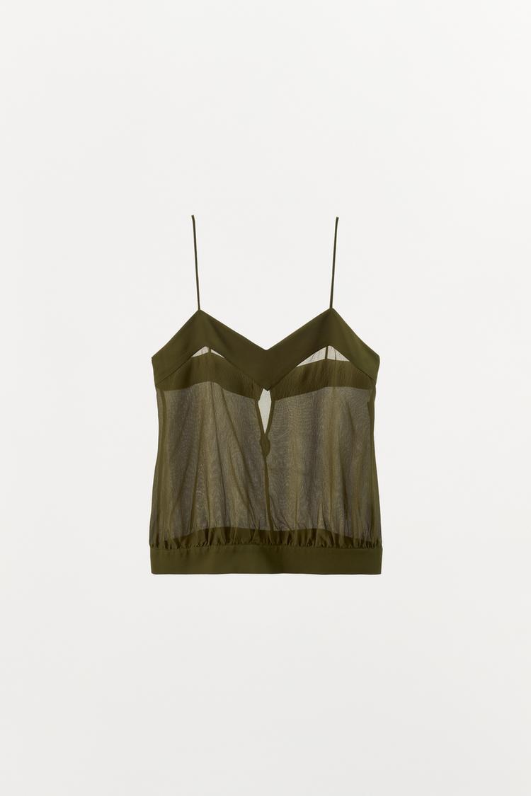 ZARA ТОП ИЗ 100% ШЕЛКА НА БРЕТЕЛЯХ, ЗЕЛЕНЫЙ