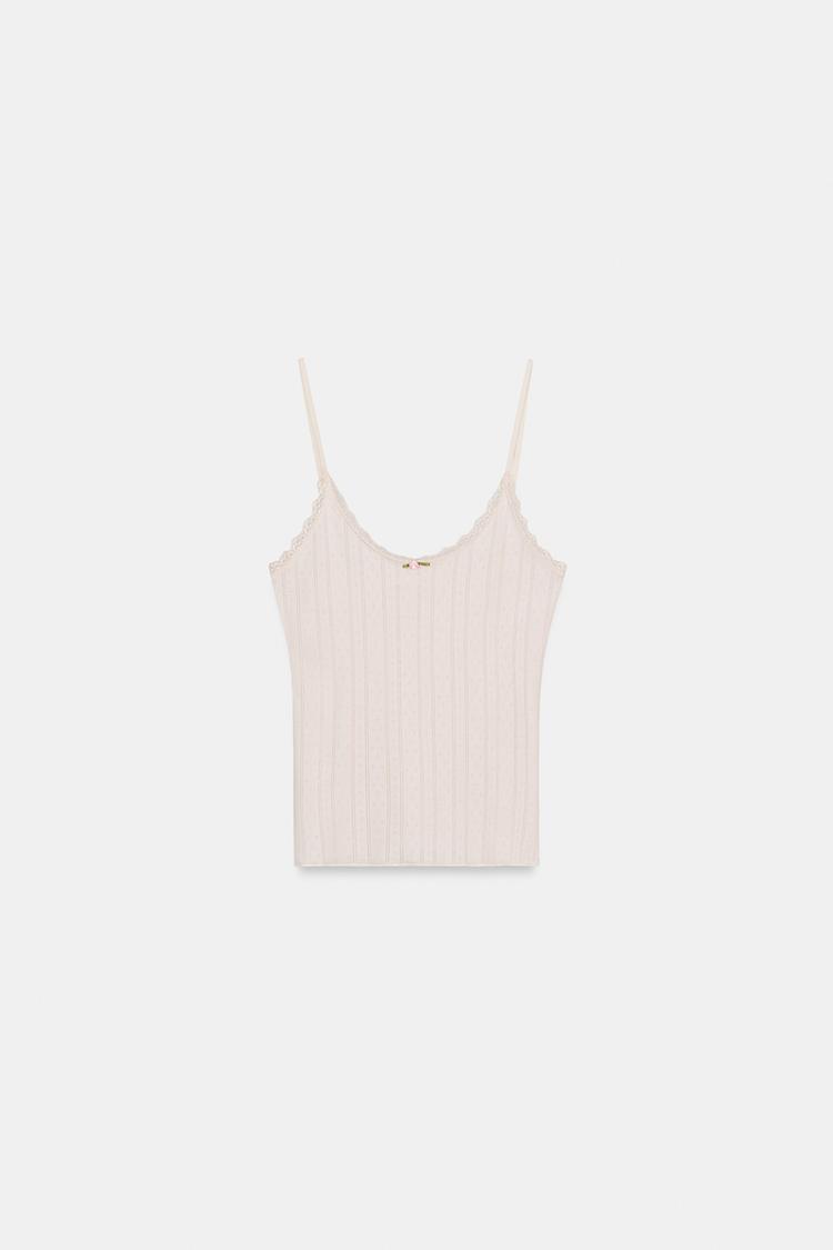 ZARA ТОП ИЗ АЖУРНОГО ТРИКОТАЖА, ЭКРЮ