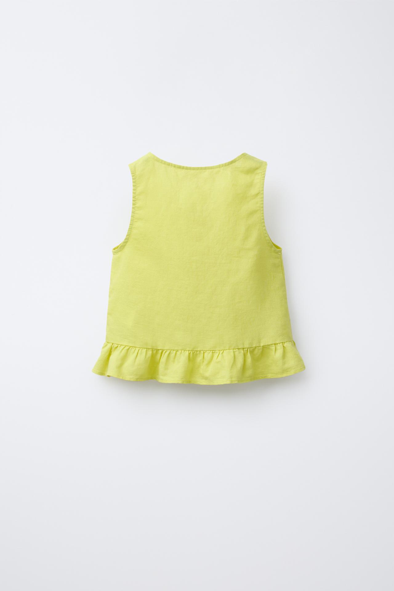 ZARA ТОП ИЗ ХЛОПКА И ЛЬНА С БАНТАМИ, ЛАЙМОВЫЙ