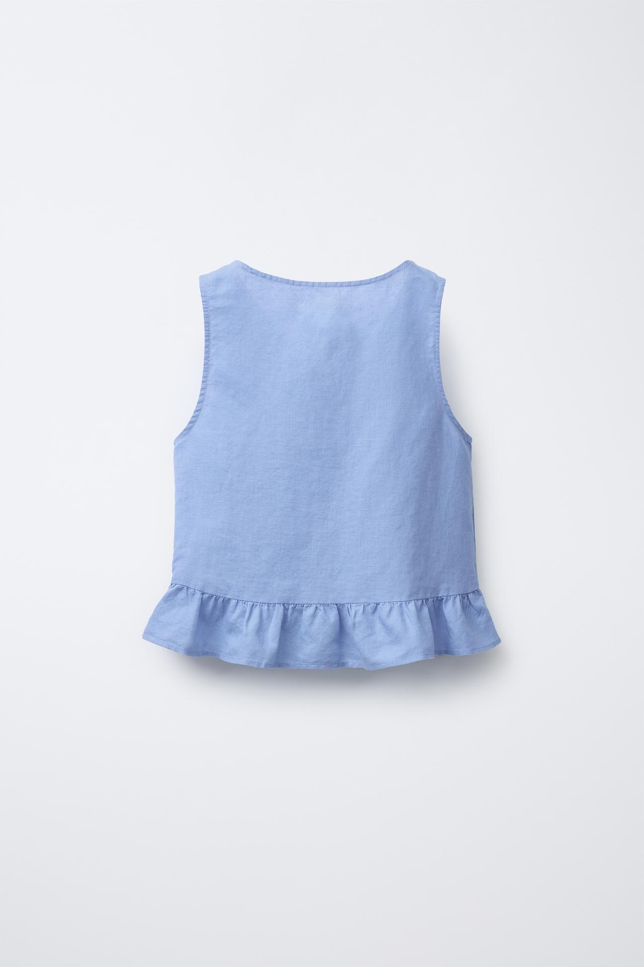 ZARA ТОП ИЗ ХЛОПКА И ЛЬНА С БАНТАМИ, СИНИЙ