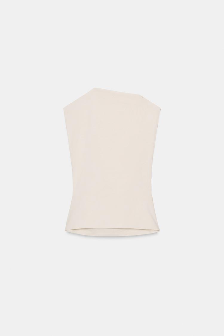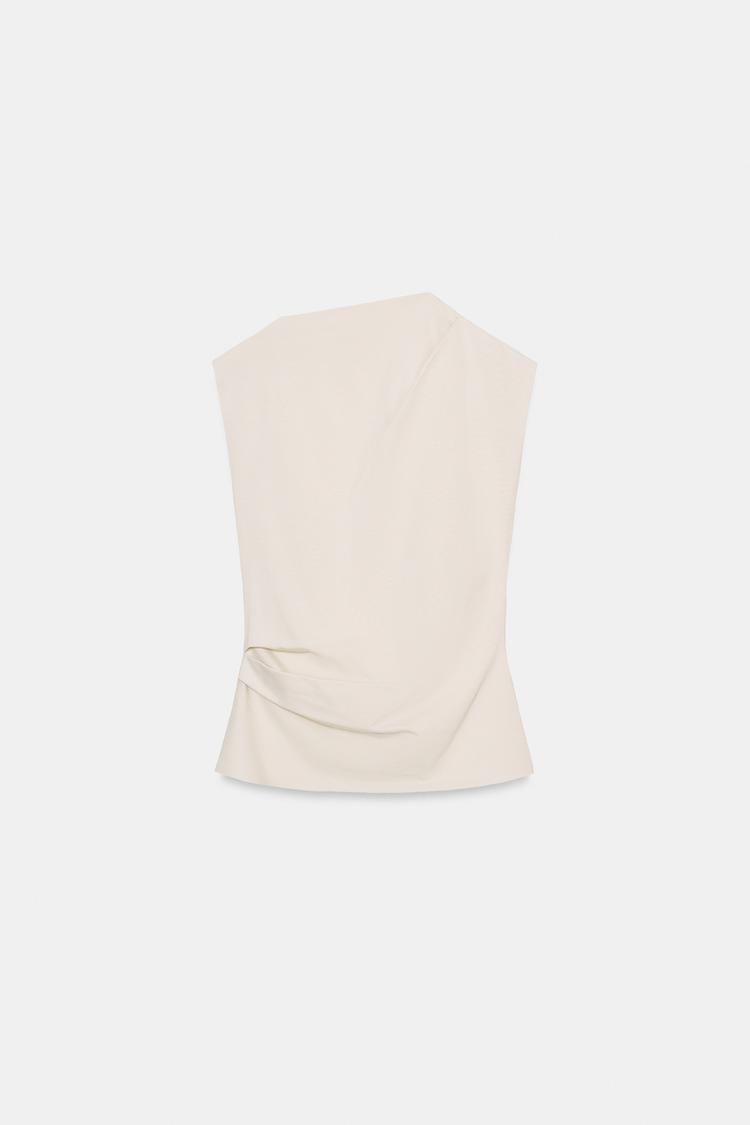 ZARA ТОП ИЗ ХЛОПКА С ДРАПИРОВКОЙ, ЭКРЮ