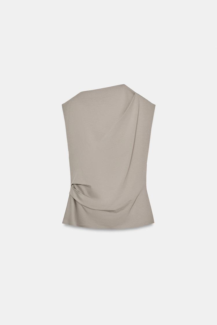 ZARA ТОП ИЗ ХЛОПКА С ДРАПИРОВКОЙ, СЕРО-СИНИЙ