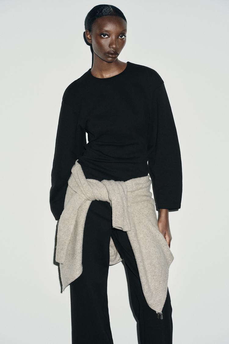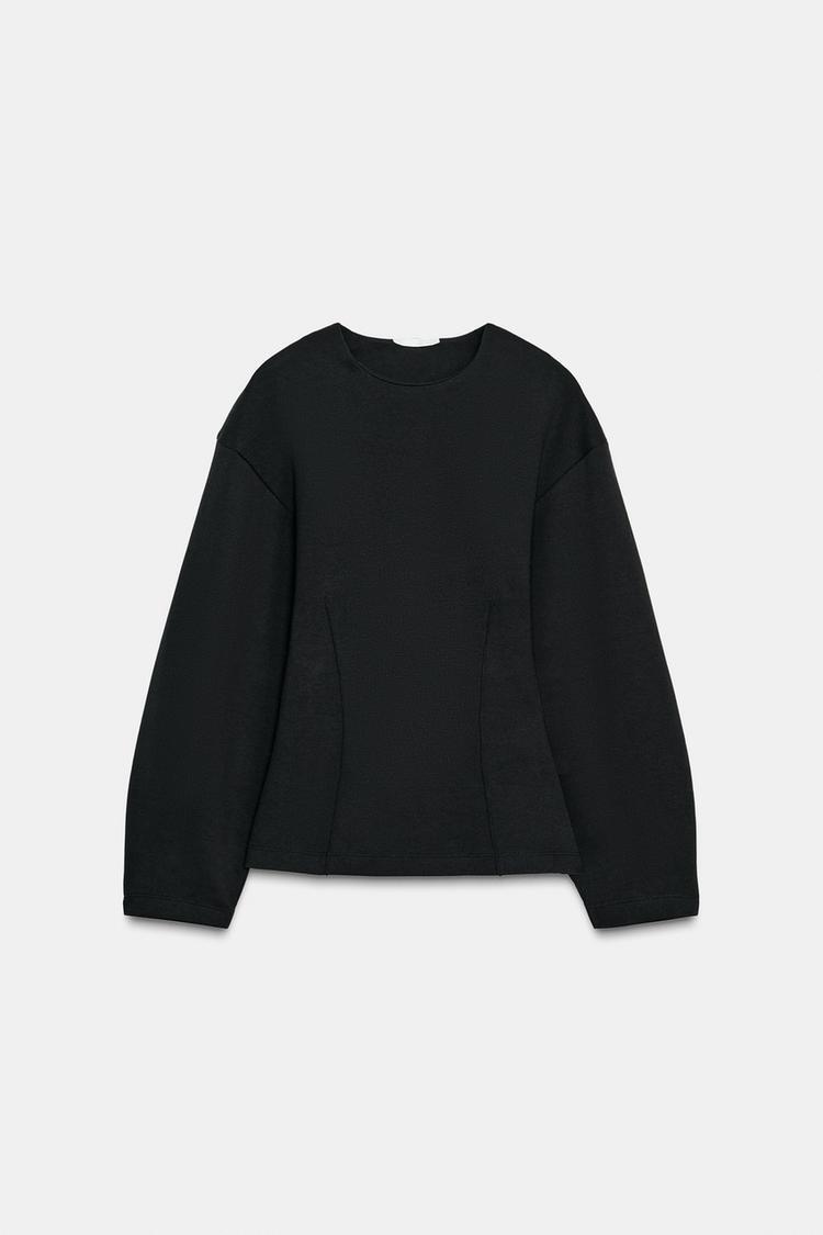 ZARA ТОП ИЗ ИНТЕРЛОКА СО СКЛАДКАМИ, ЧЕРНЫЙ