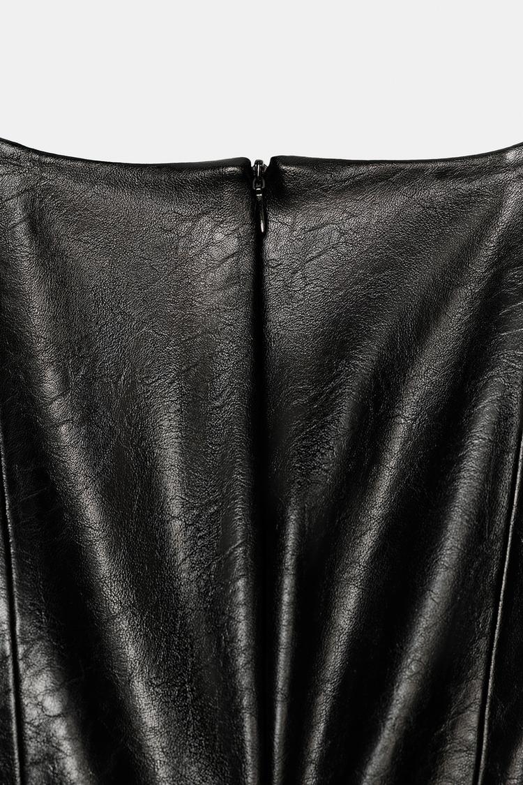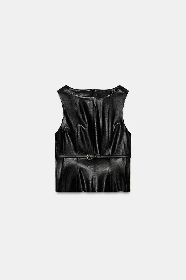 ZARA ТОП ИЗ ИСКУССТВЕННОЙ КОЖИ С РЕМНЕМ, ЧЕРНЫЙ