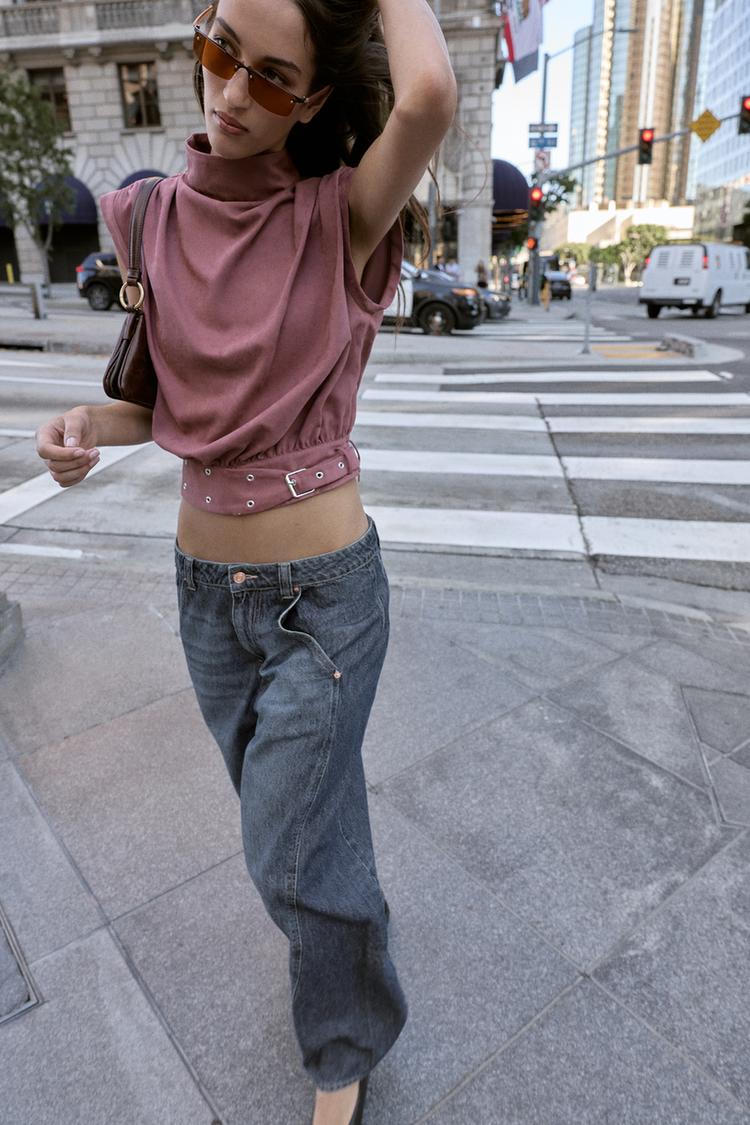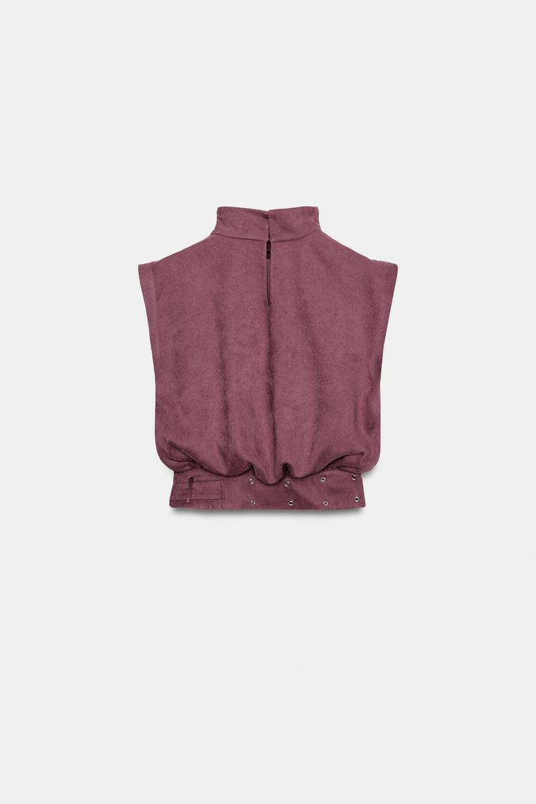 ZARA ТОП ИЗ ИСКУССТВЕННОЙ ЗАМШИ С ПРЯЖКОЙ, МАРСАЛА