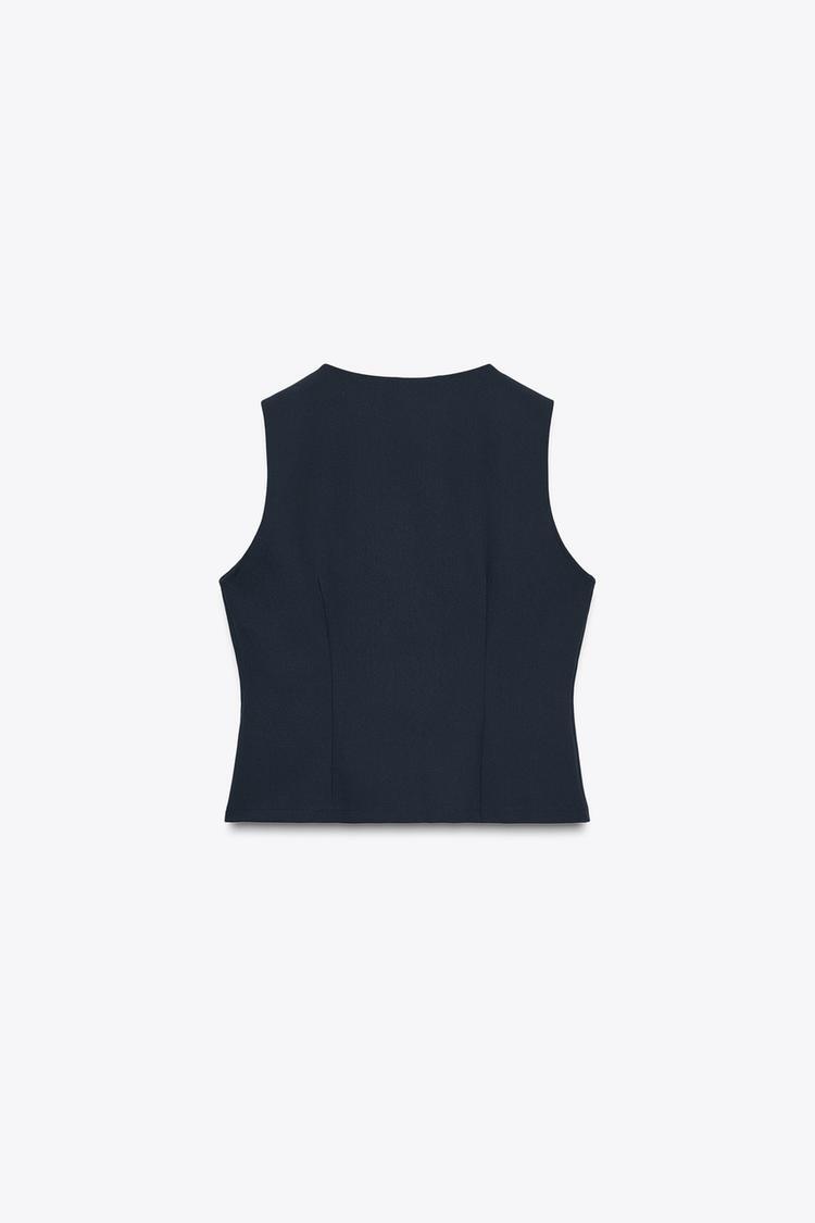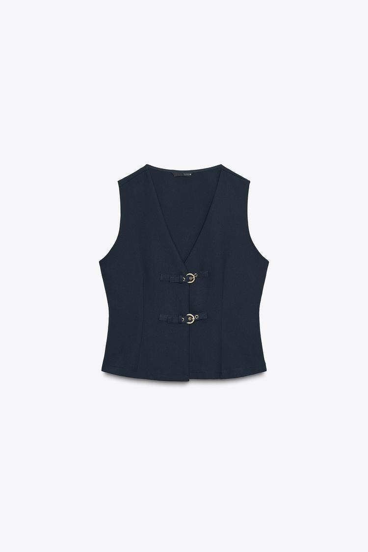 ZARA ТОП ИЗ КРЕПА С ПРЯЖКАМИ, МОРСКОЙ СИНИЙ