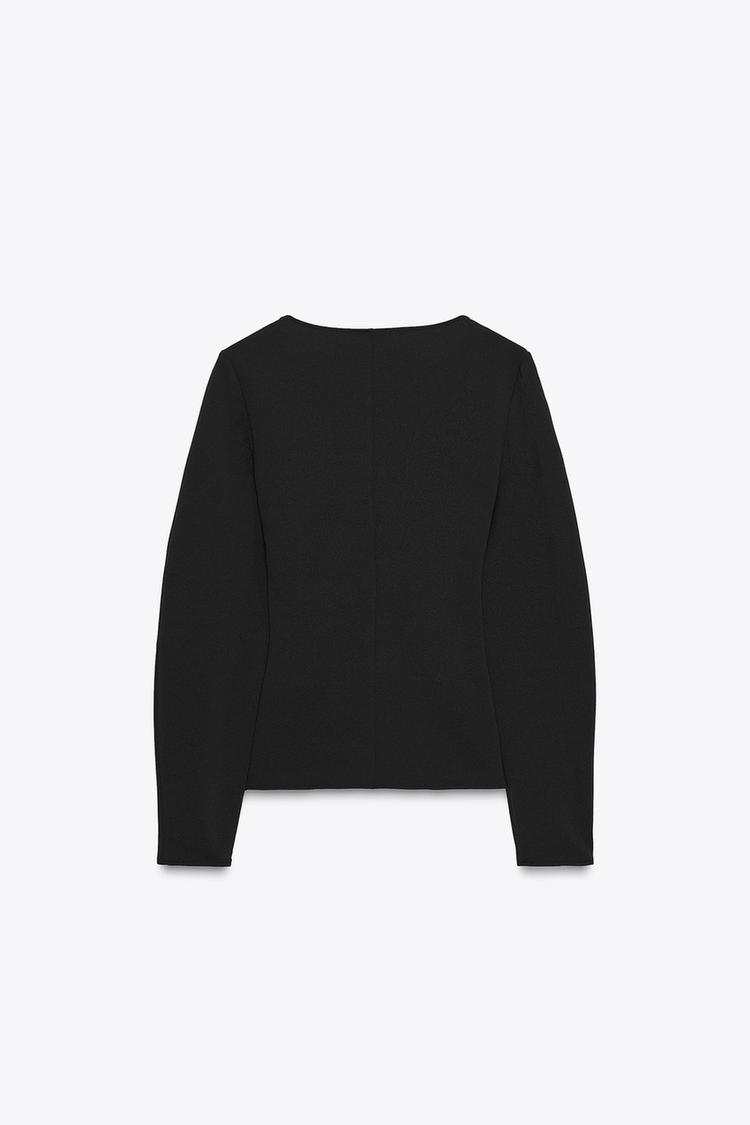 ZARA ТОП ИЗ КРЕПА СО СБОРКАМИ, ЧЕРНЫЙ