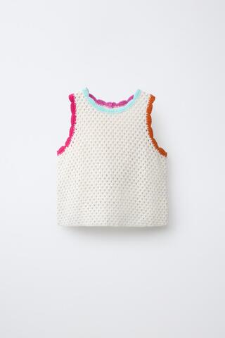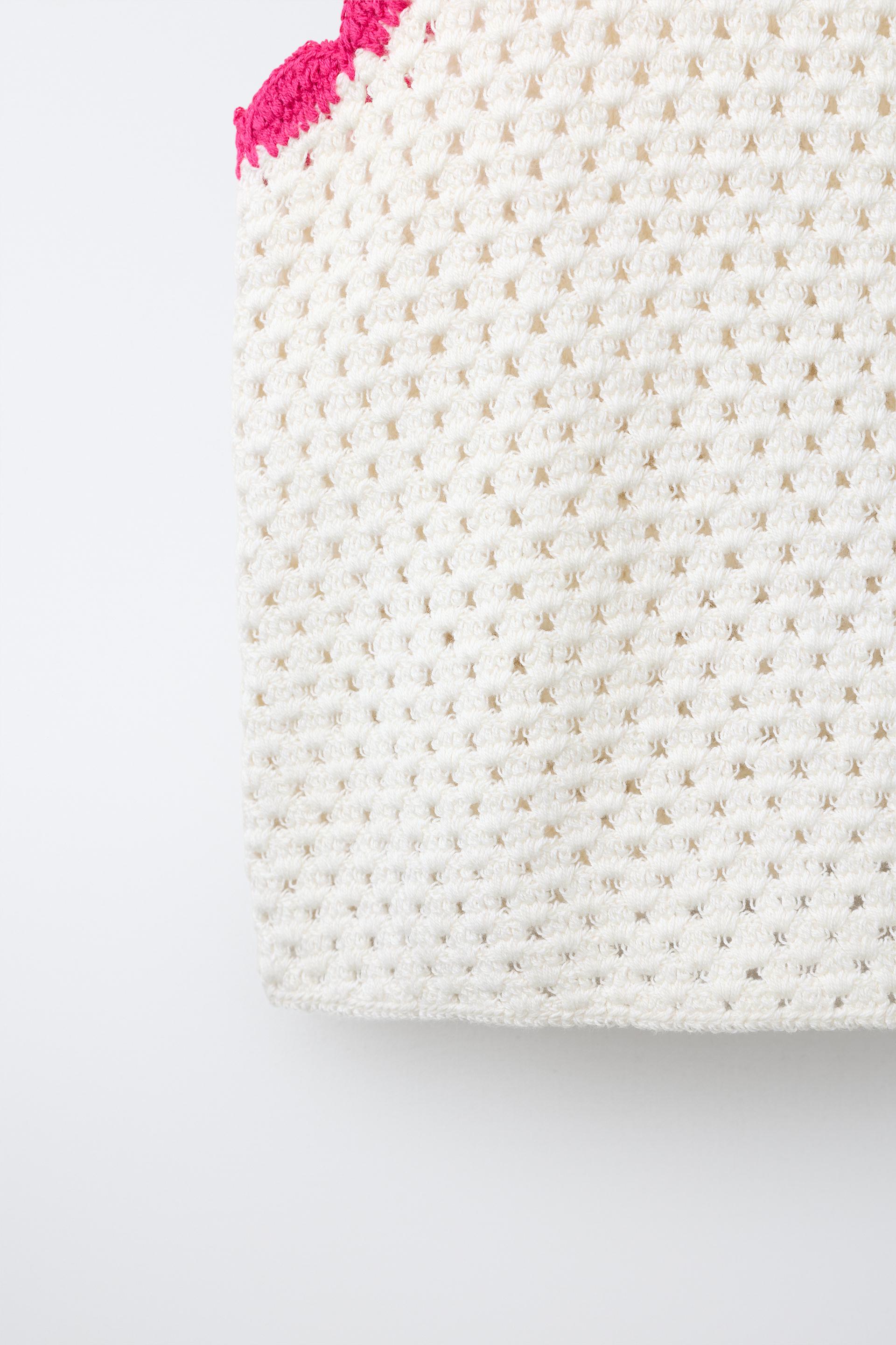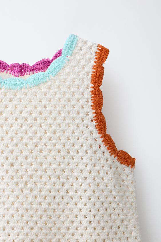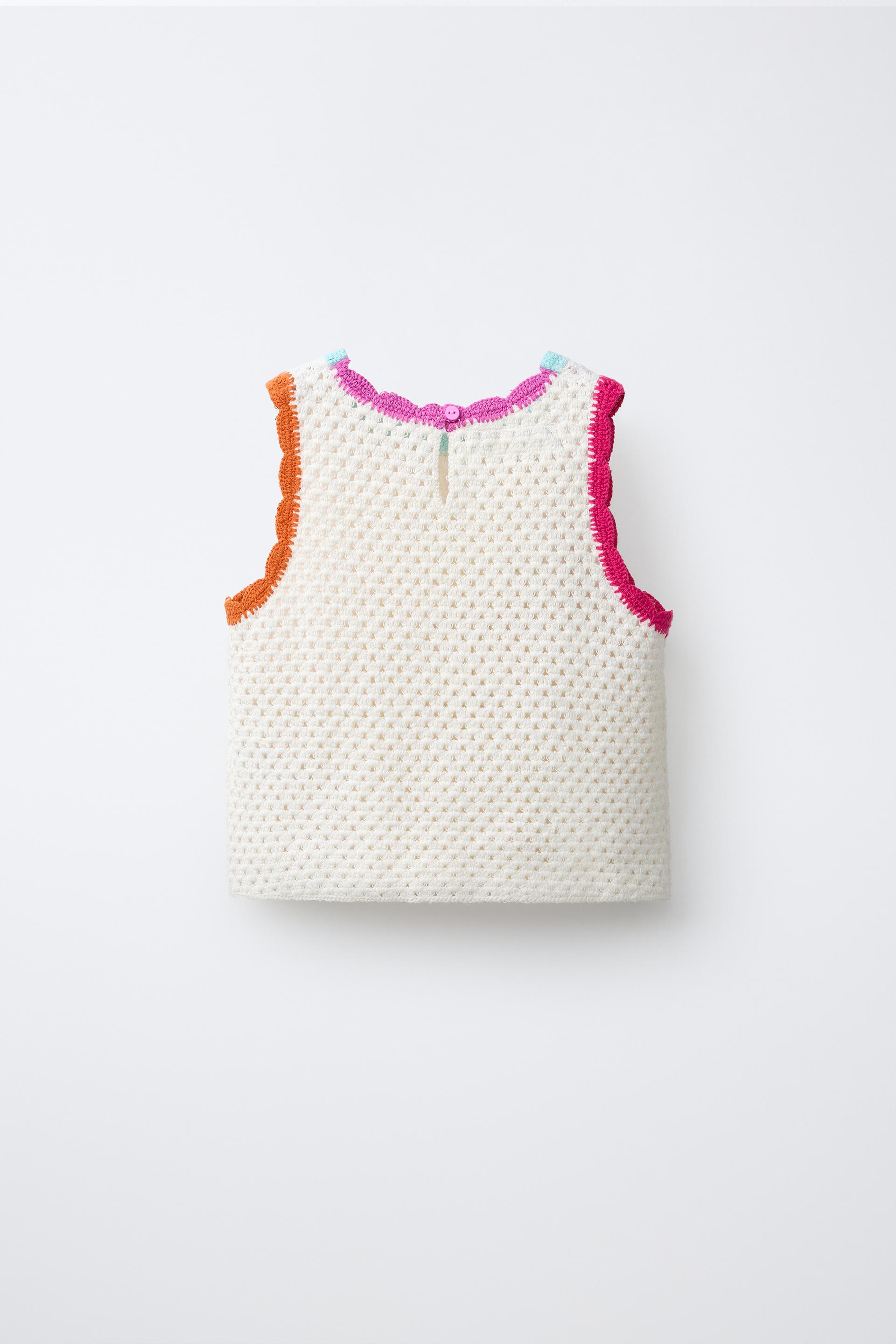 ZARA ТОП ИЗ КРУЖЕВА КРОШЕ С КОНТРАСТНЫМИ ЭЛЕМЕНТАМИ, ЭКРЮ