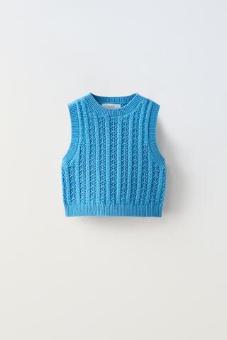 ZARA ТОП ИЗ КРУЖЕВА КРОШЕ, СИНИЙ