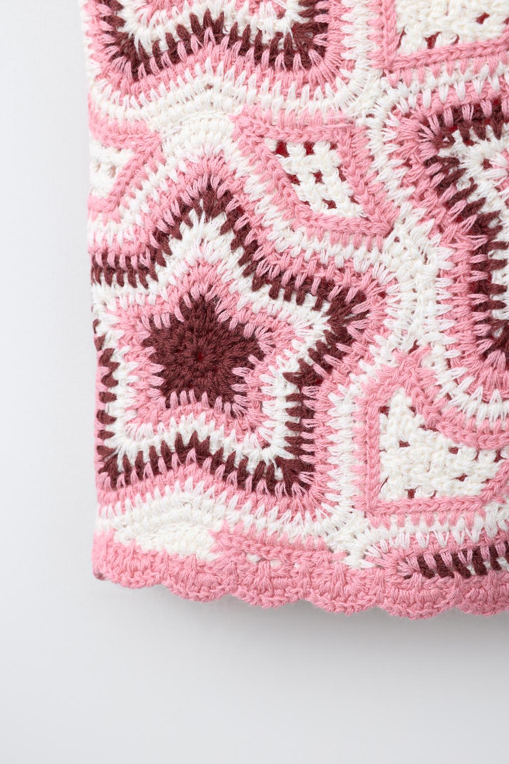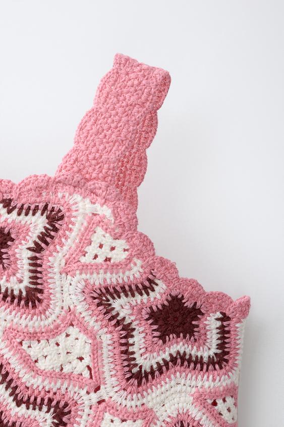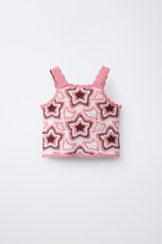 ZARA ТОП ИЗ КРУЖЕВА КРОШЕ СО ЗВЕЗДАМИ, РОЗОВАТЫЙ