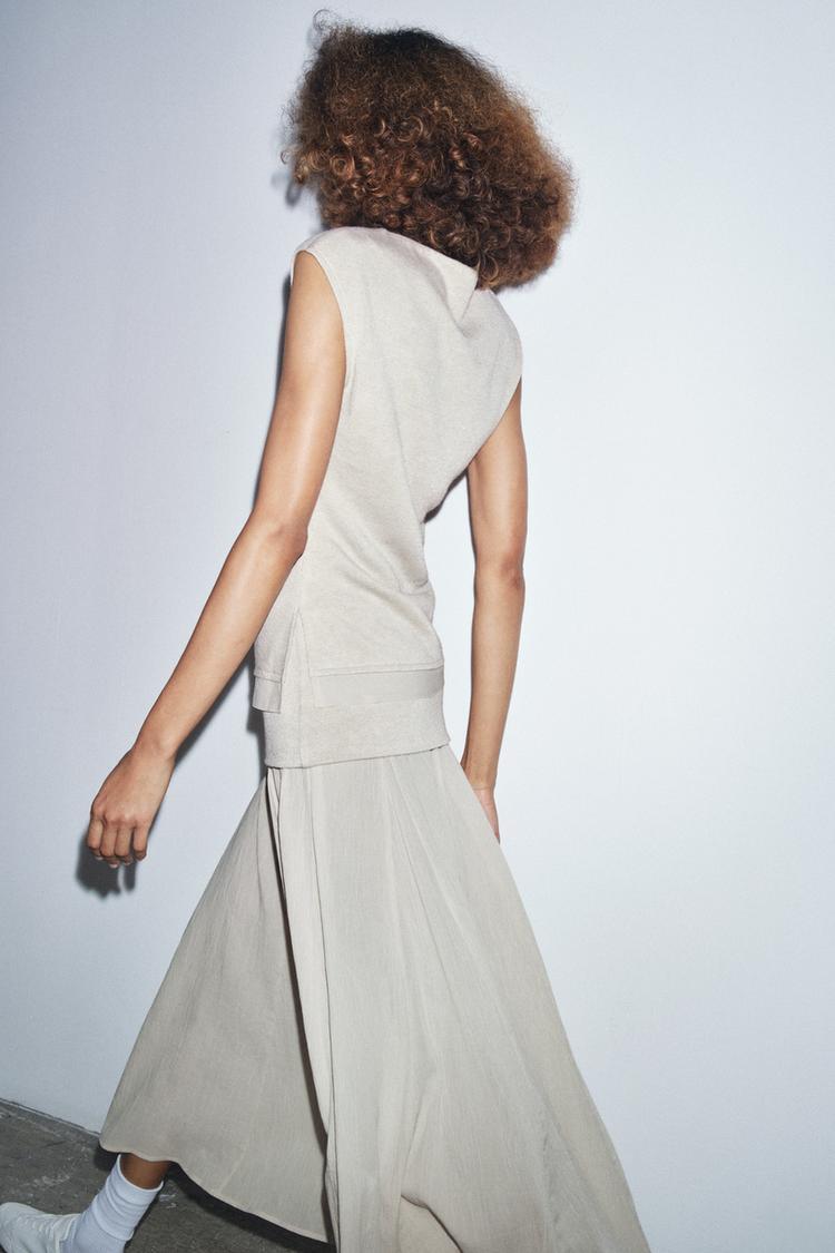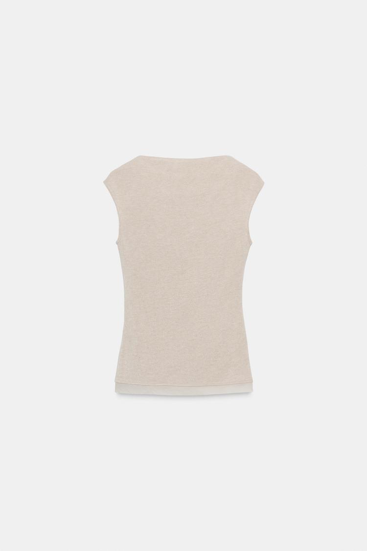 ZARA ТОП ИЗ МЯГКОЙ ТКАНИ С ДРАПИРОВКОЙ, ЭКРЮ