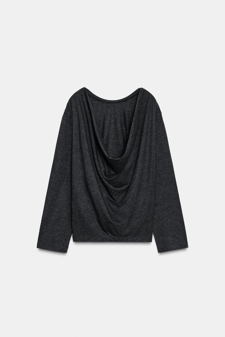 ZARA ТОП ИЗ МЯГКОЙ ТКАНИ С ДРАПИРОВКОЙ НА СПИНКЕ, МАРЕНГО МЕЛАНЖ
