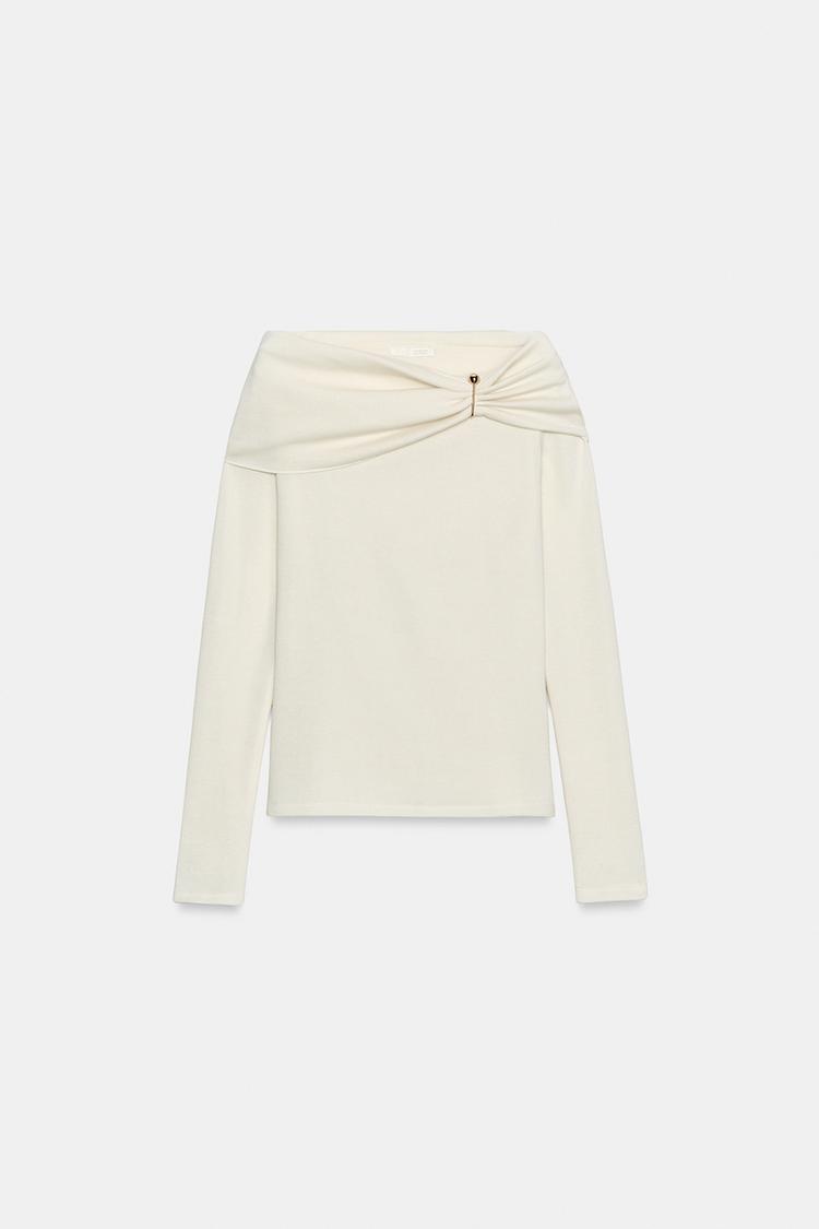 ZARA ТОП ИЗ МЯГКОЙ ТКАНИ С ПРЯЖКОЙ, ЭКРЮ
