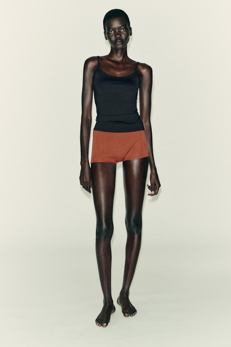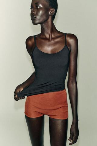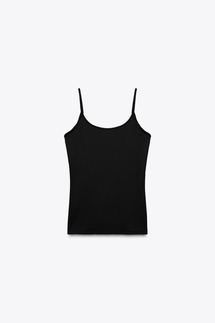 ZARA ТОП ИЗ ПОЛИАМИДА НА ТОНКИХ БРЕТЕЛЯХ, ЧЕРНЫЙ