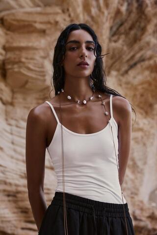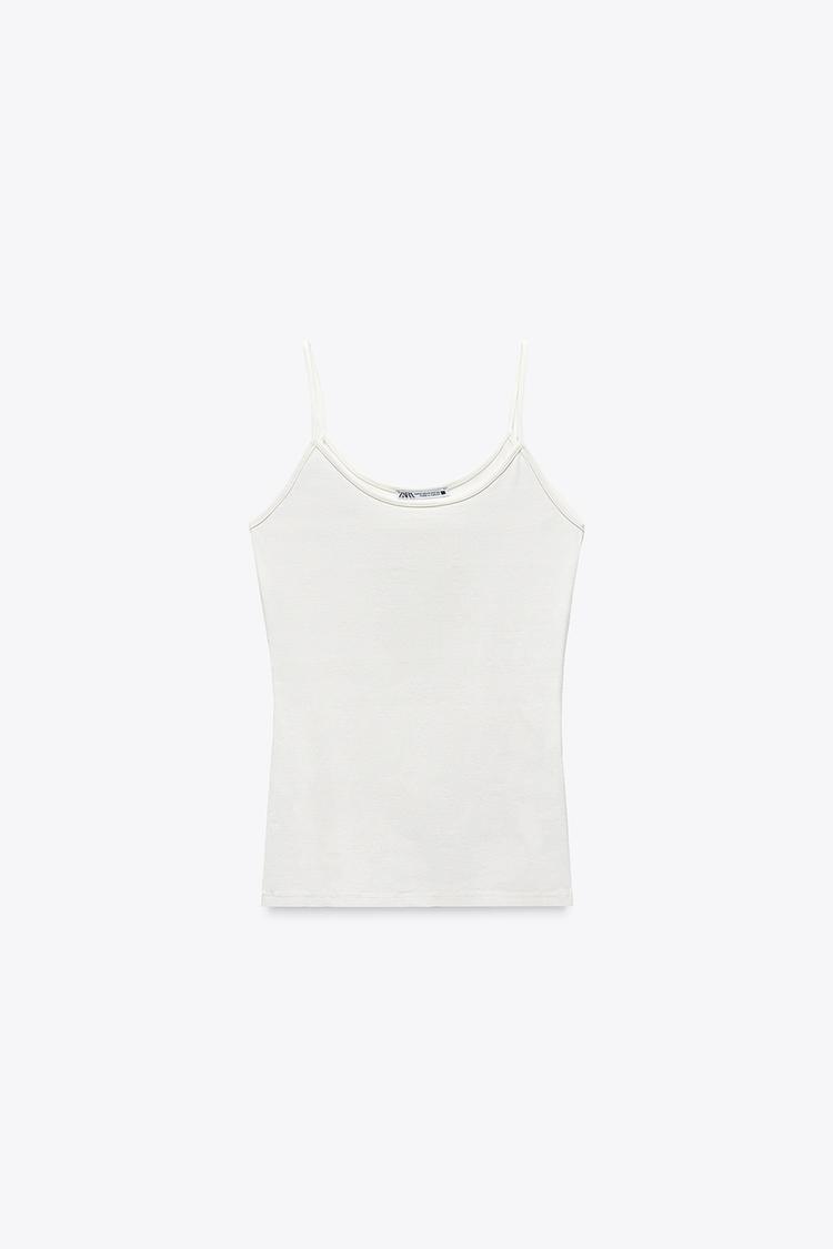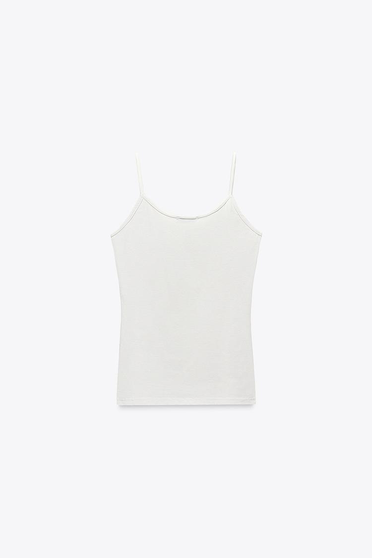 ZARA ТОП ИЗ ПОЛИАМИДА НА ТОНКИХ БРЕТЕЛЯХ, ЭКРЮ