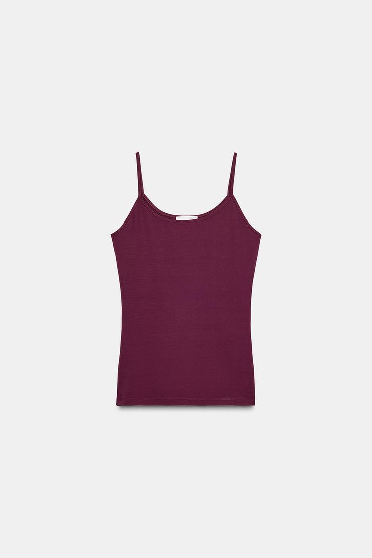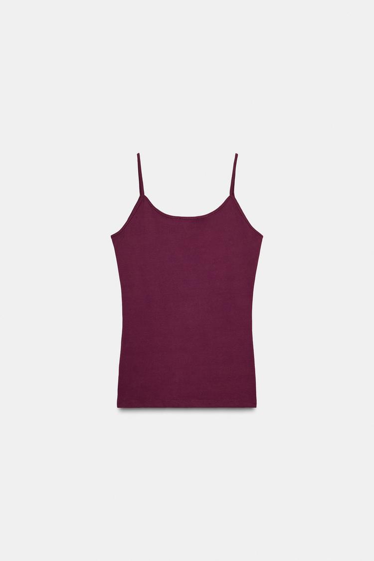 ZARA ТОП ИЗ ПОЛИАМИДА НА ТОНКИХ БРЕТЕЛЯХ, ВИННЫЙ