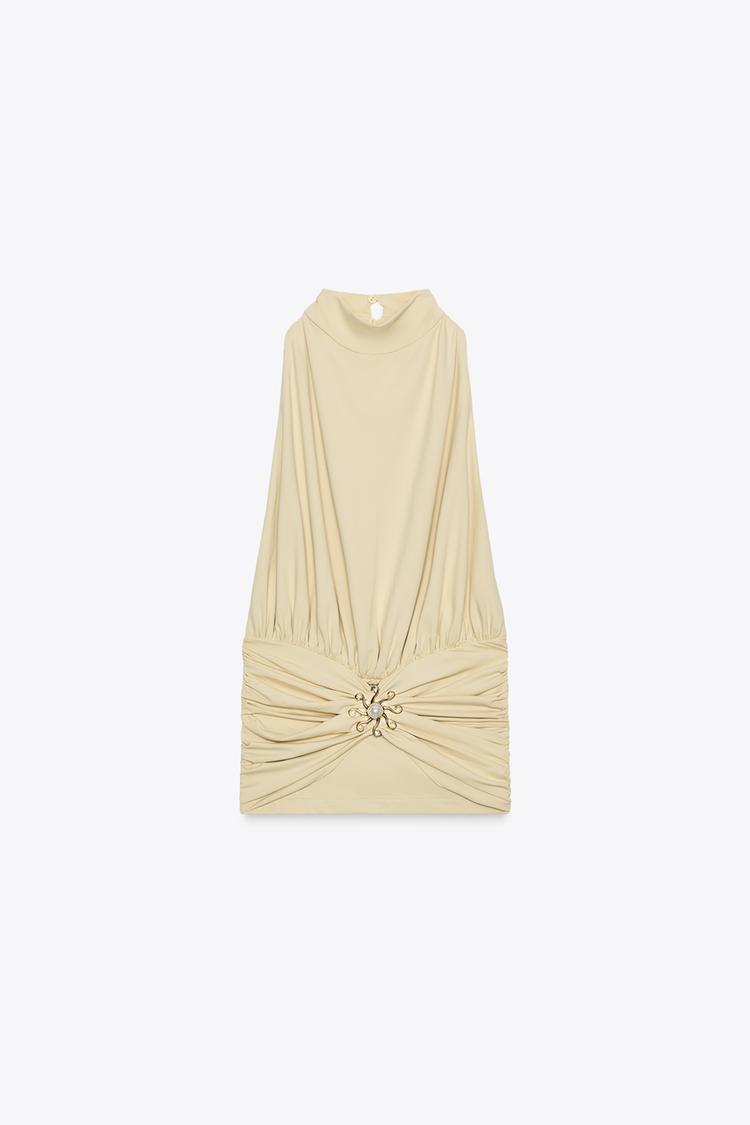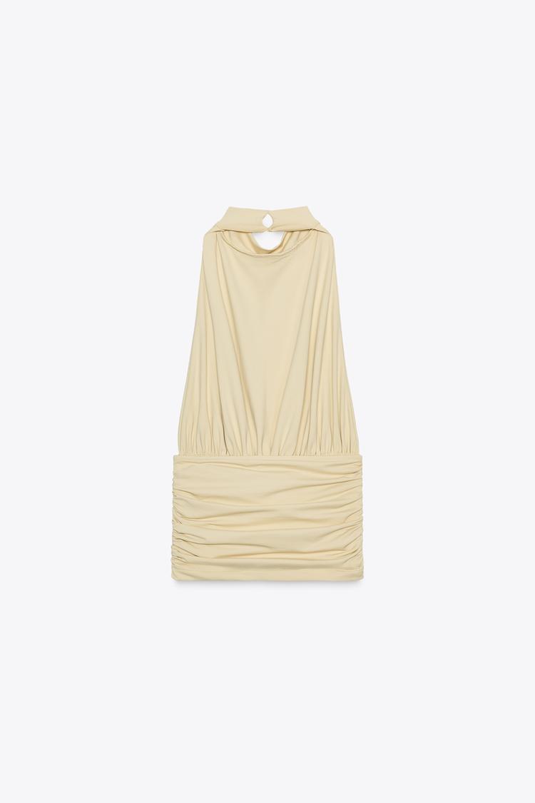 ZARA ТОП ИЗ ПОЛИАМИДА СО СБОРКАМИ И СОЛНЦЕМ, ЖЕЛТЫЙ