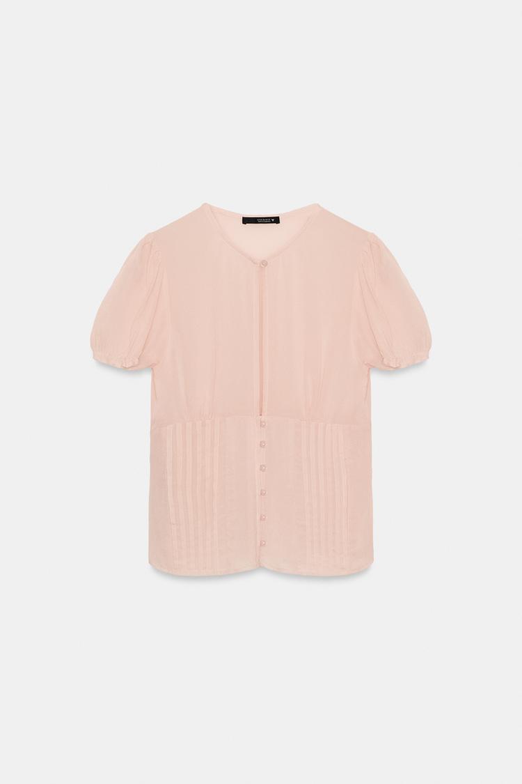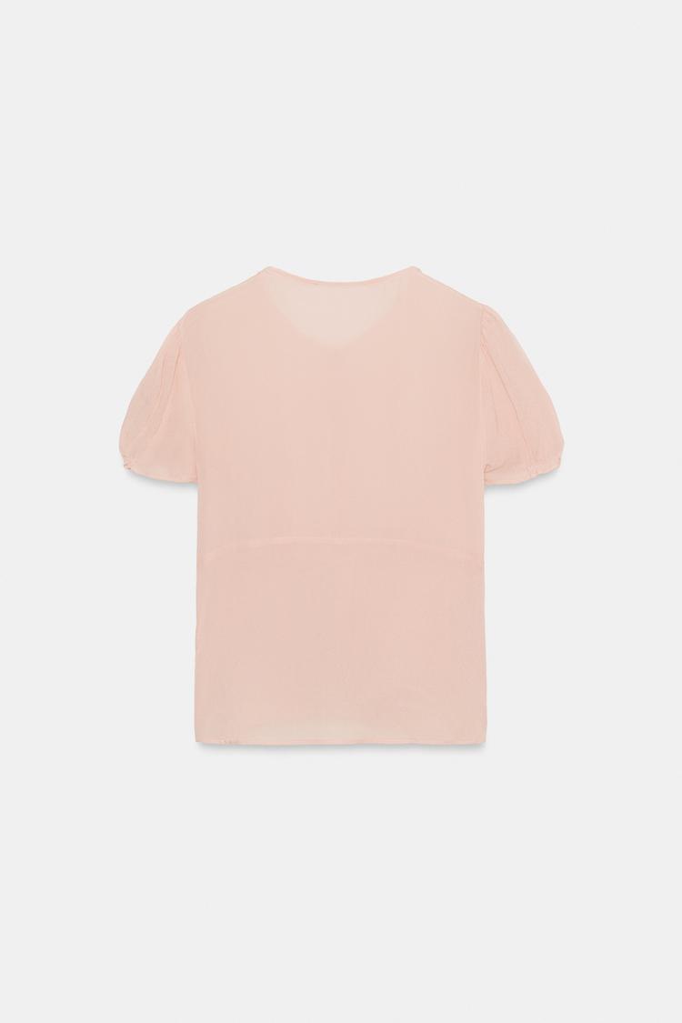 ZARA ТОП ИЗ ПОЛУПРОЗРАЧНОГО ЖОРЖЕТА, ПАСТЕЛЬНО-РОЗОВЫЙ