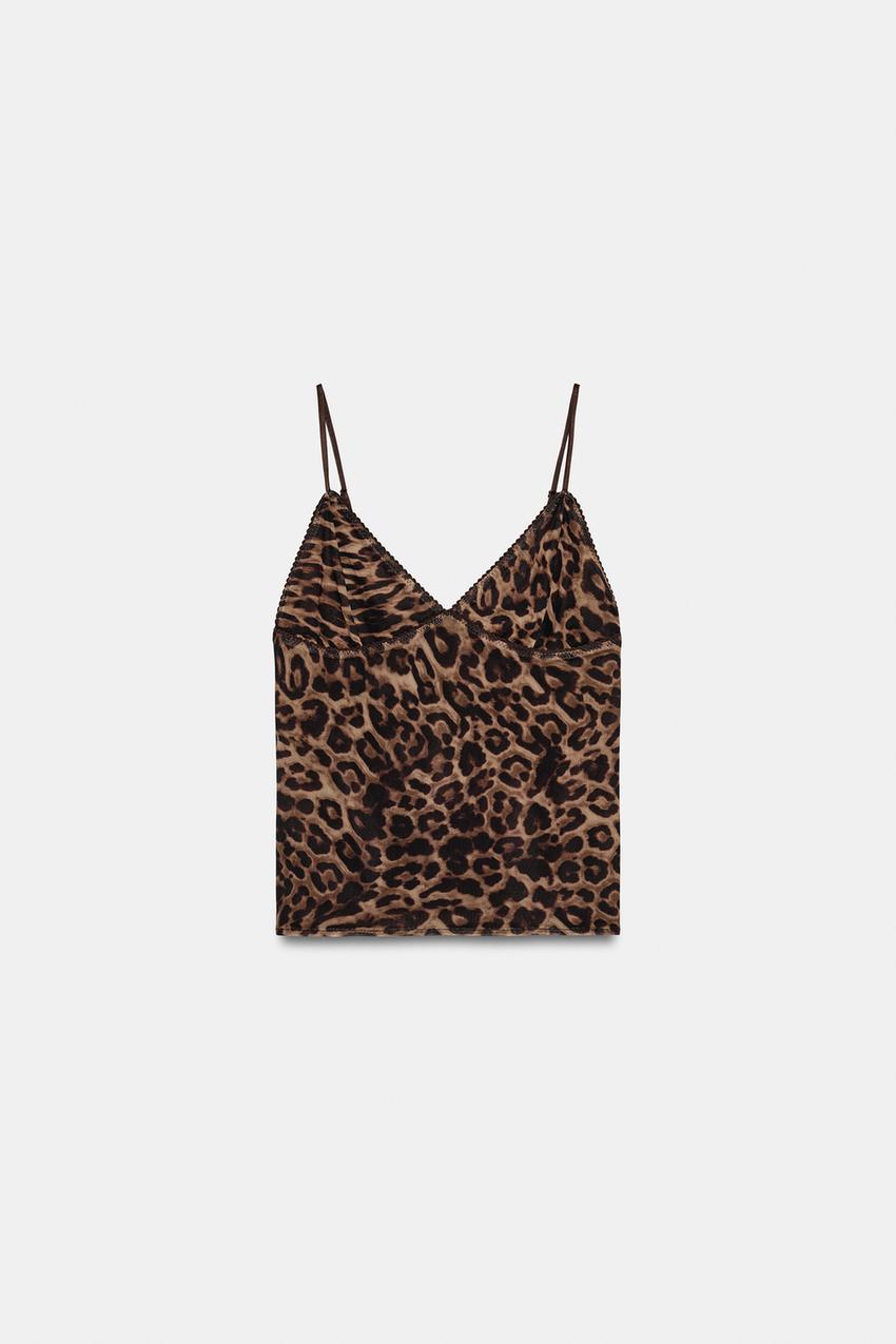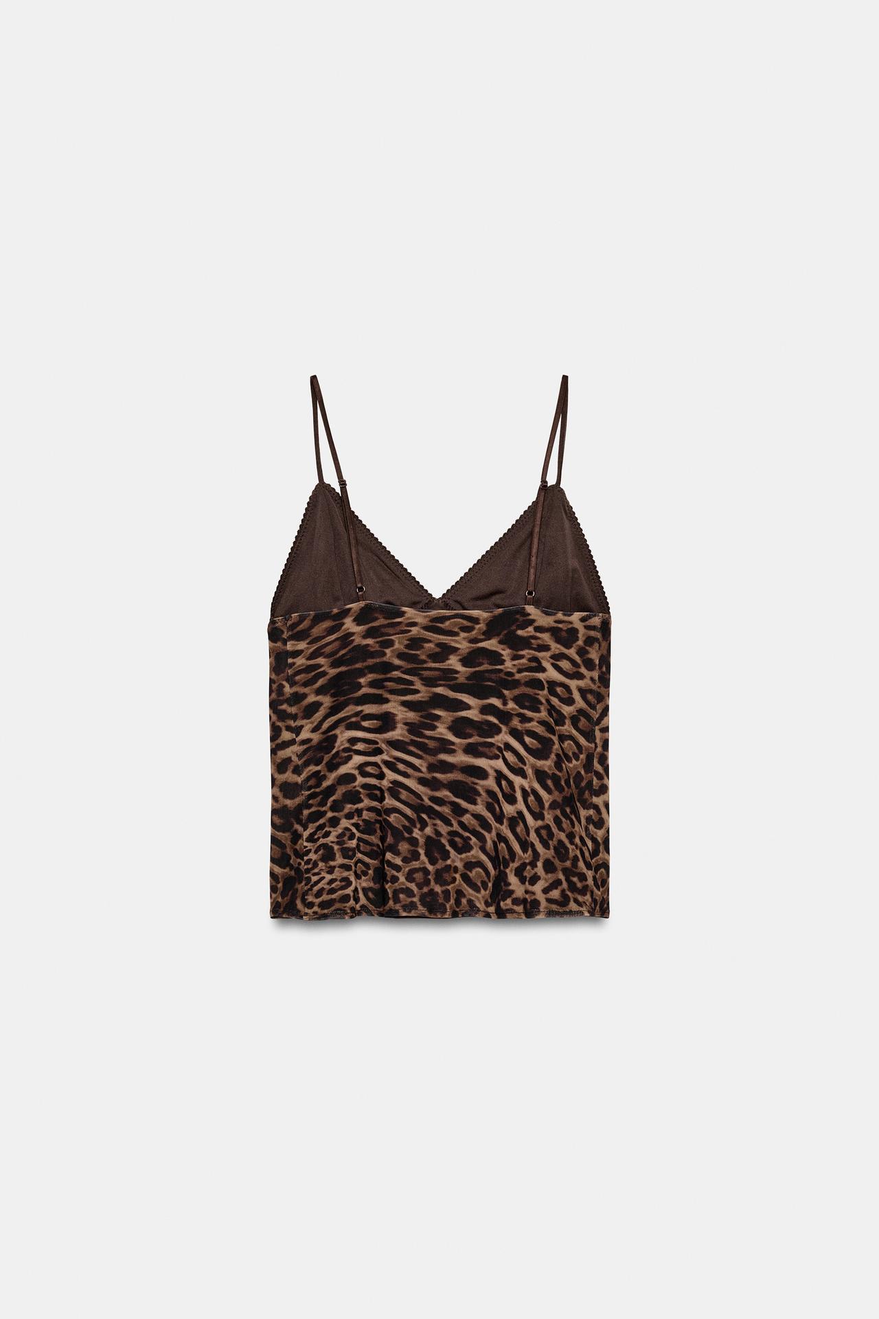ZARA ТОП ИЗ ПОЛУПРОЗРАЧНОЙ ТКАНИ С АНИМАЛИСТИЧЕСКИМ ПРИНТОМ, ЛЕОПАРДОВЫЙ/НЕЖНО-КОРИЧНЕВЫЙ