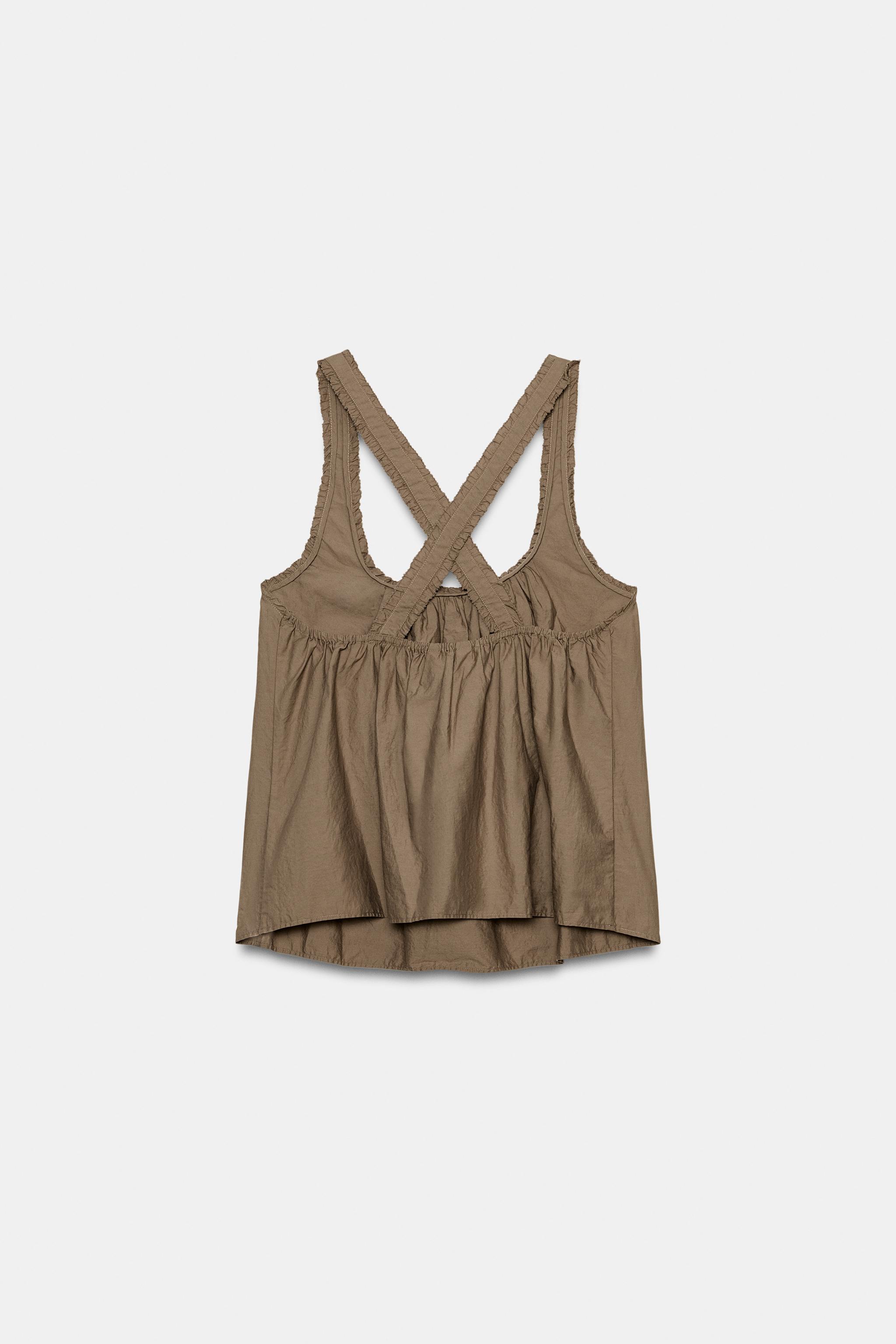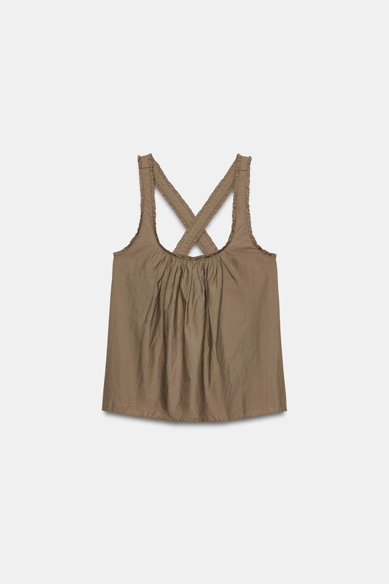 ZARA ТОП ИЗ ПОПЛИНА НА БРЕТЕЛЯХ, КОРИЧНЕВЫЙ