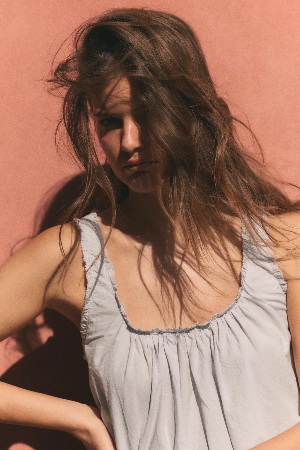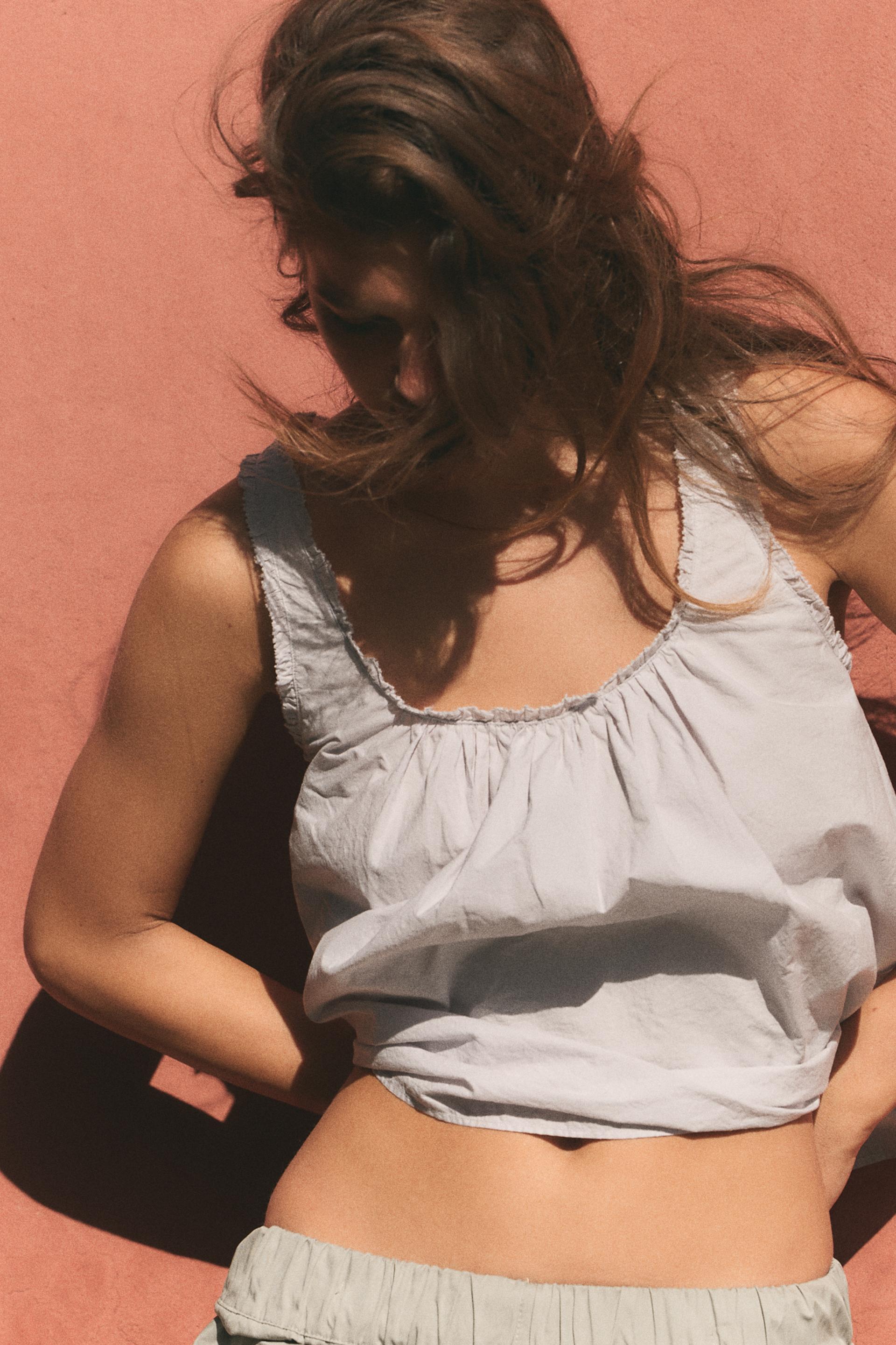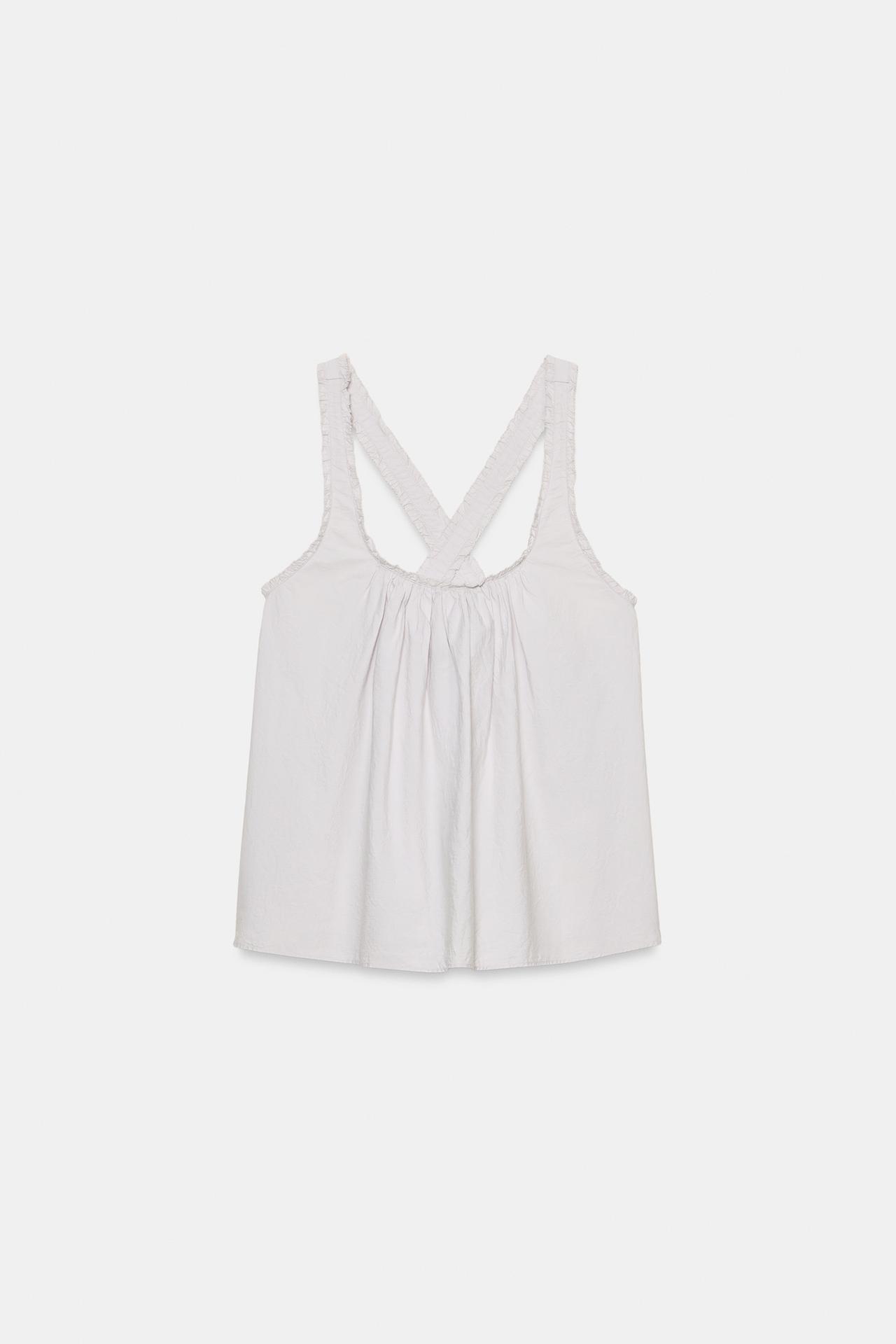 ZARA ТОП ИЗ ПОПЛИНА НА БРЕТЕЛЯХ, СВЕТЛО-СИРЕНЕВЫЙ
