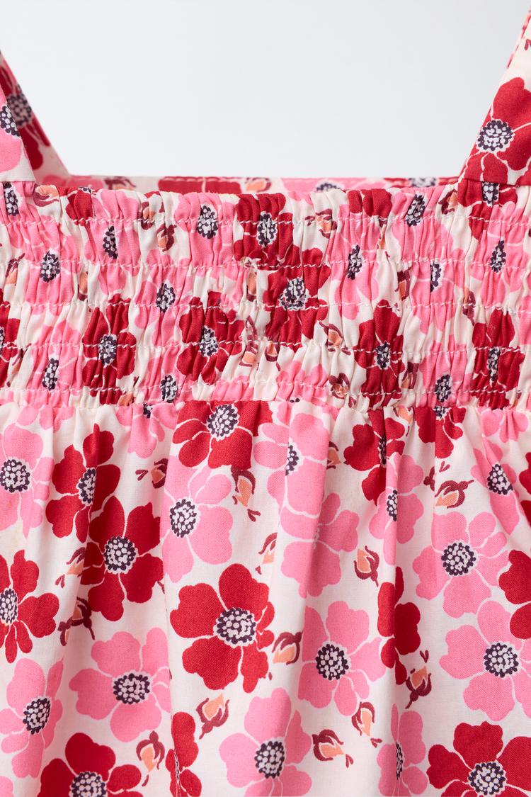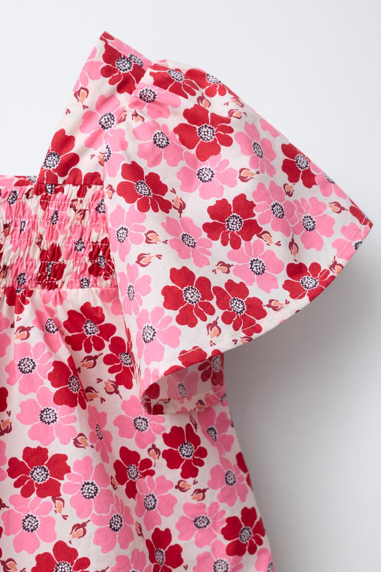 ZARA ТОП ИЗ ПОПЛИНА С ЦВЕТОЧНЫМ ПРИНТОМ, КРАСНЫЙ