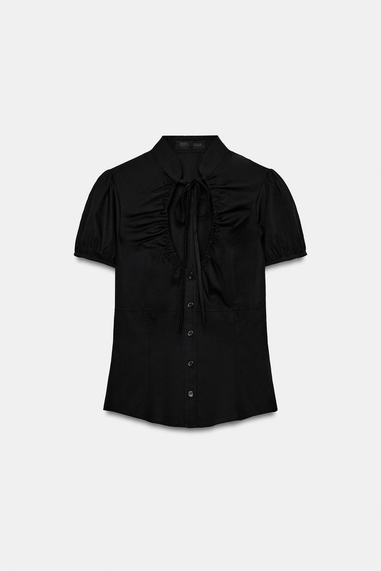 ZARA ТОП ИЗ ПОПЛИНА С ЗАВЯЗКАМИ, ЧЕРНЫЙ