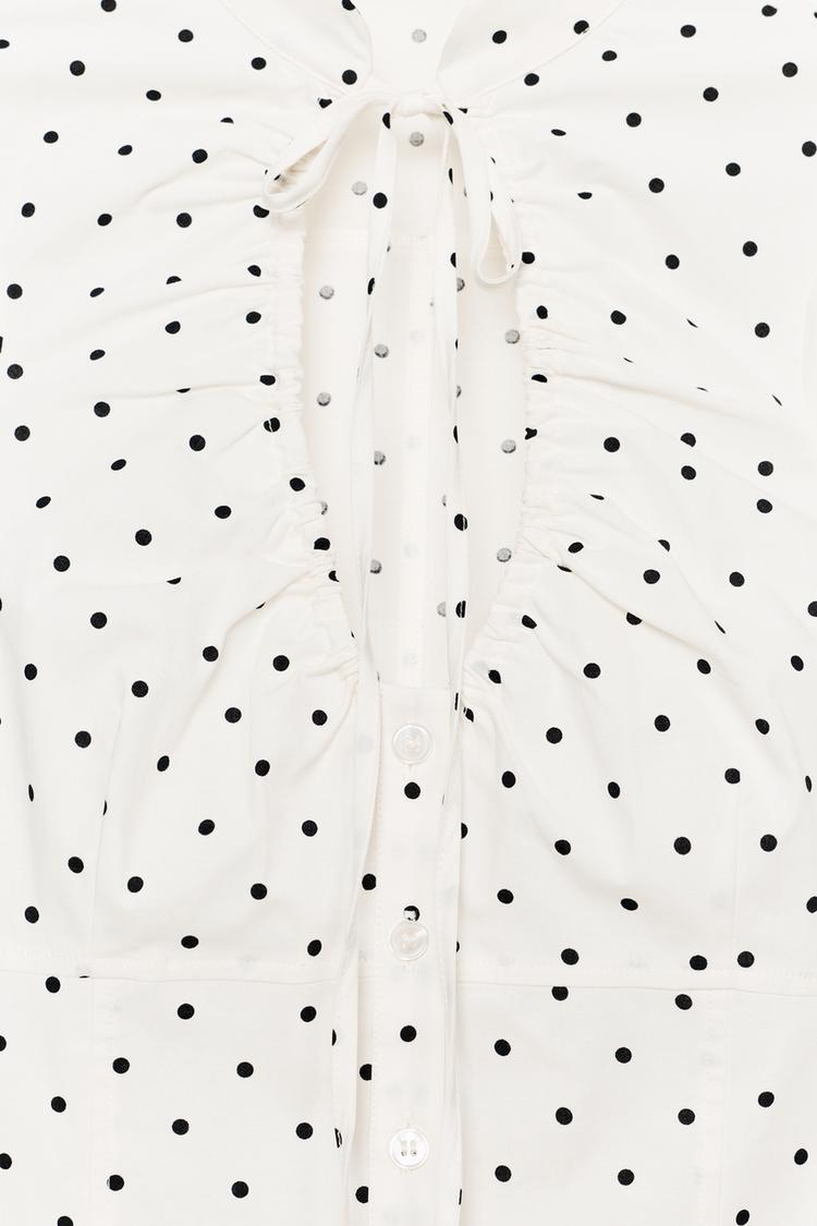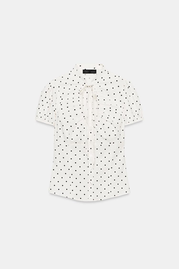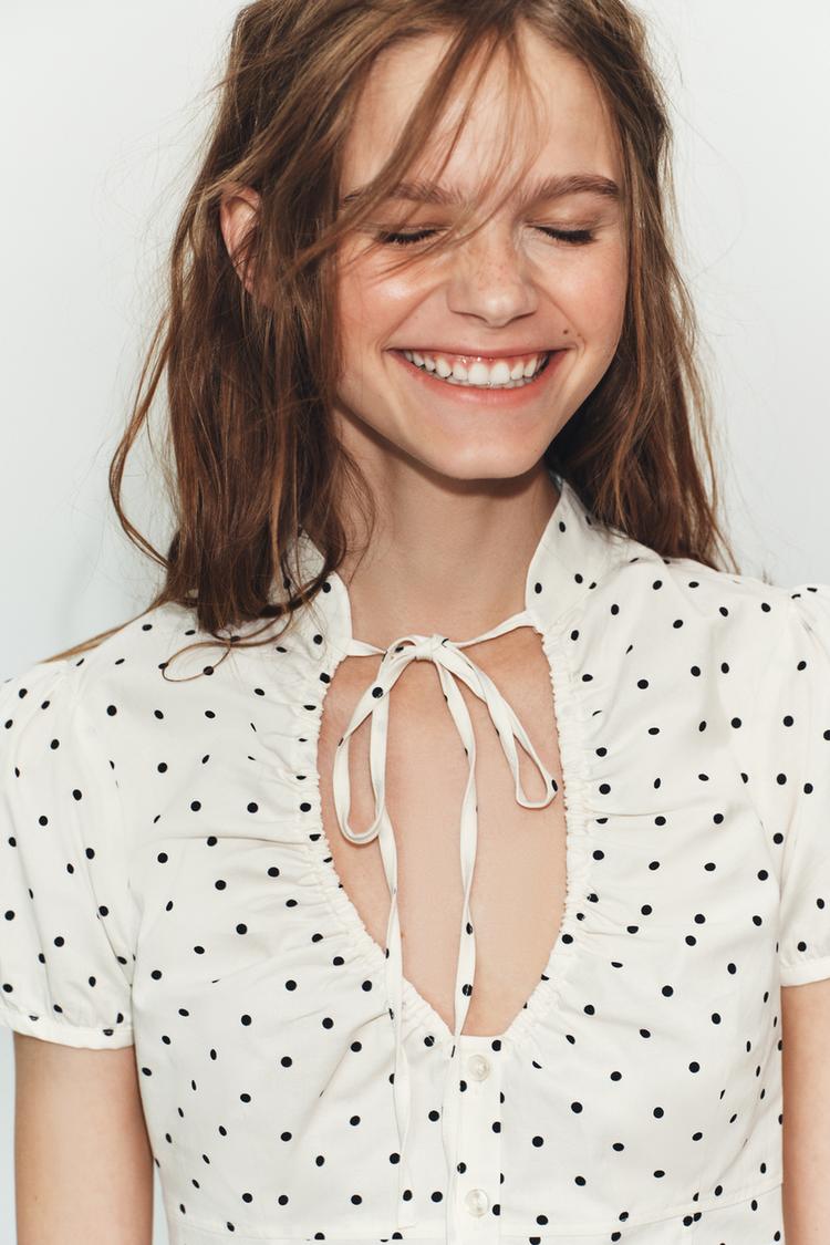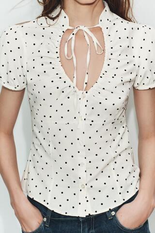 ZARA ТОП ИЗ ПОПЛИНА С ЗАВЯЗКАМИ, ЭКРЮ/ЧЕРНЫЙ
