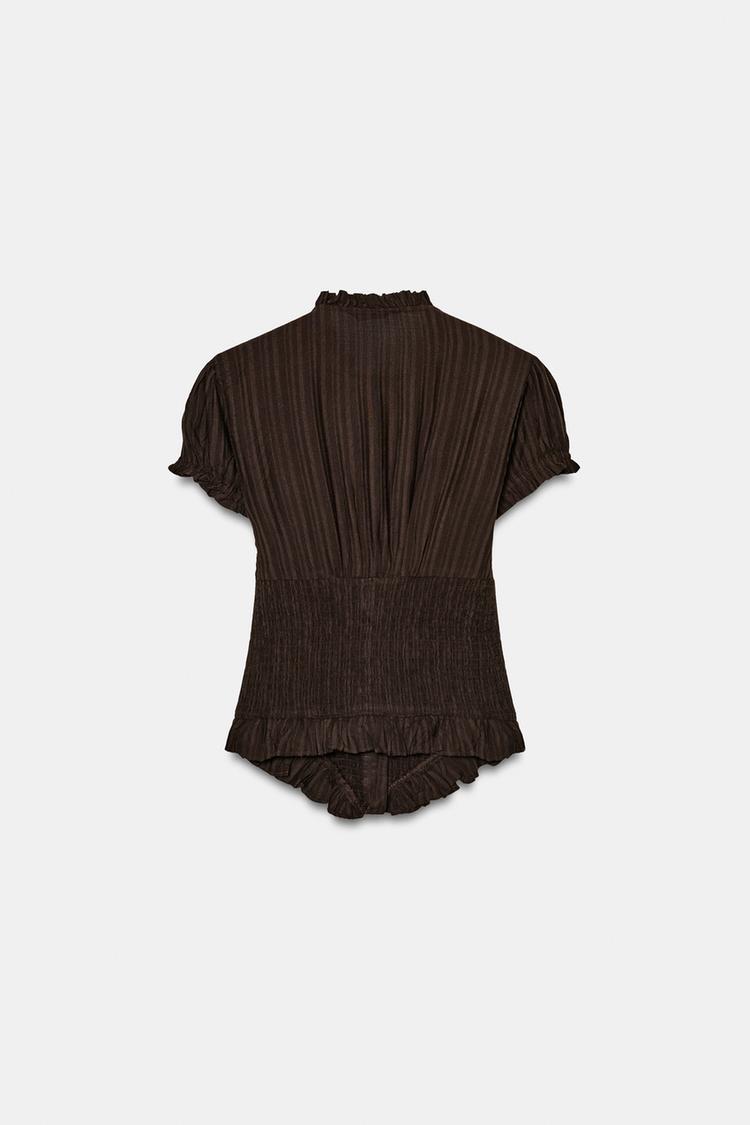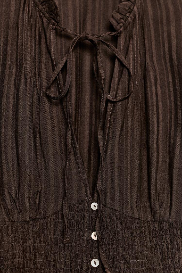 ZARA ТОП ИЗ РЕЛЬЕФНОЙ ТКАНИ С БАНТОМ, ТЕМНО-КОРИЧНЕВЫЙ