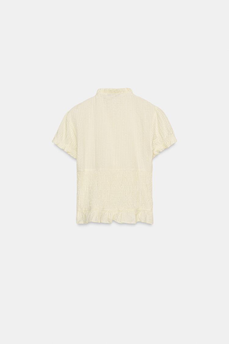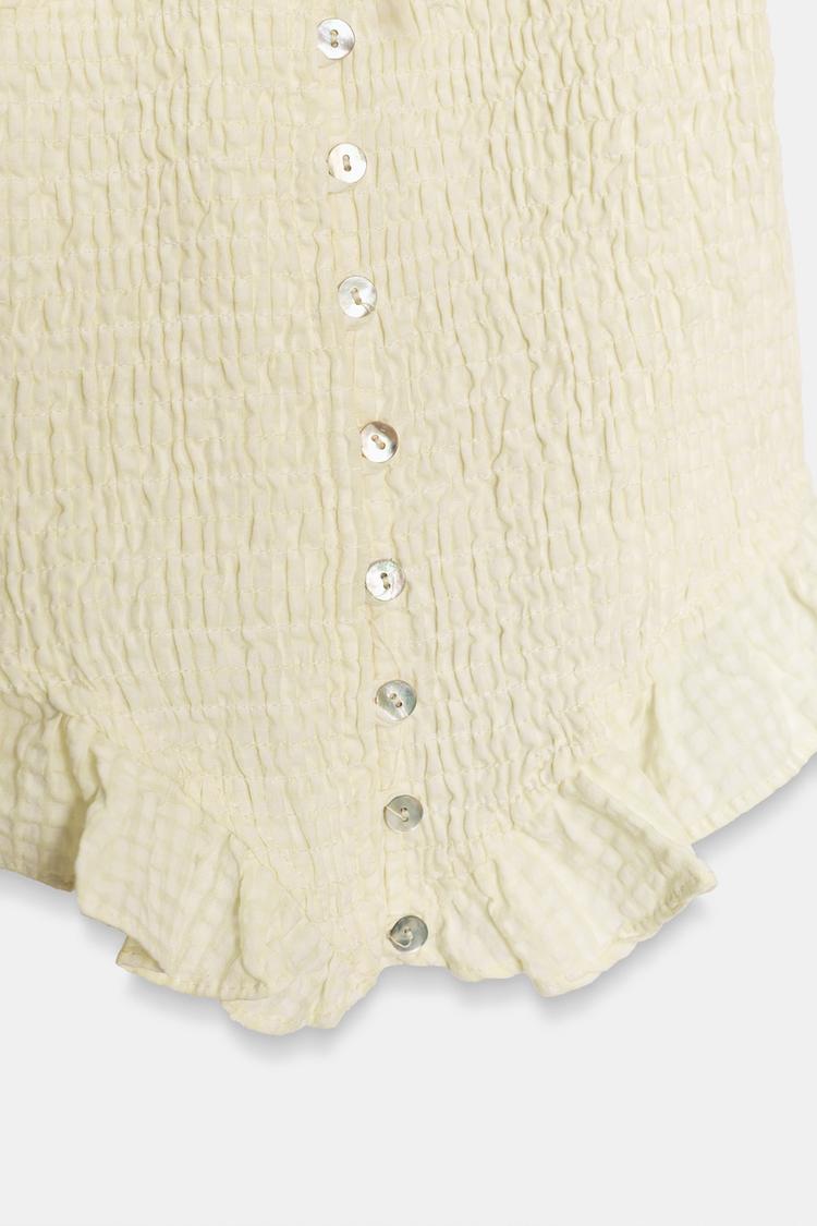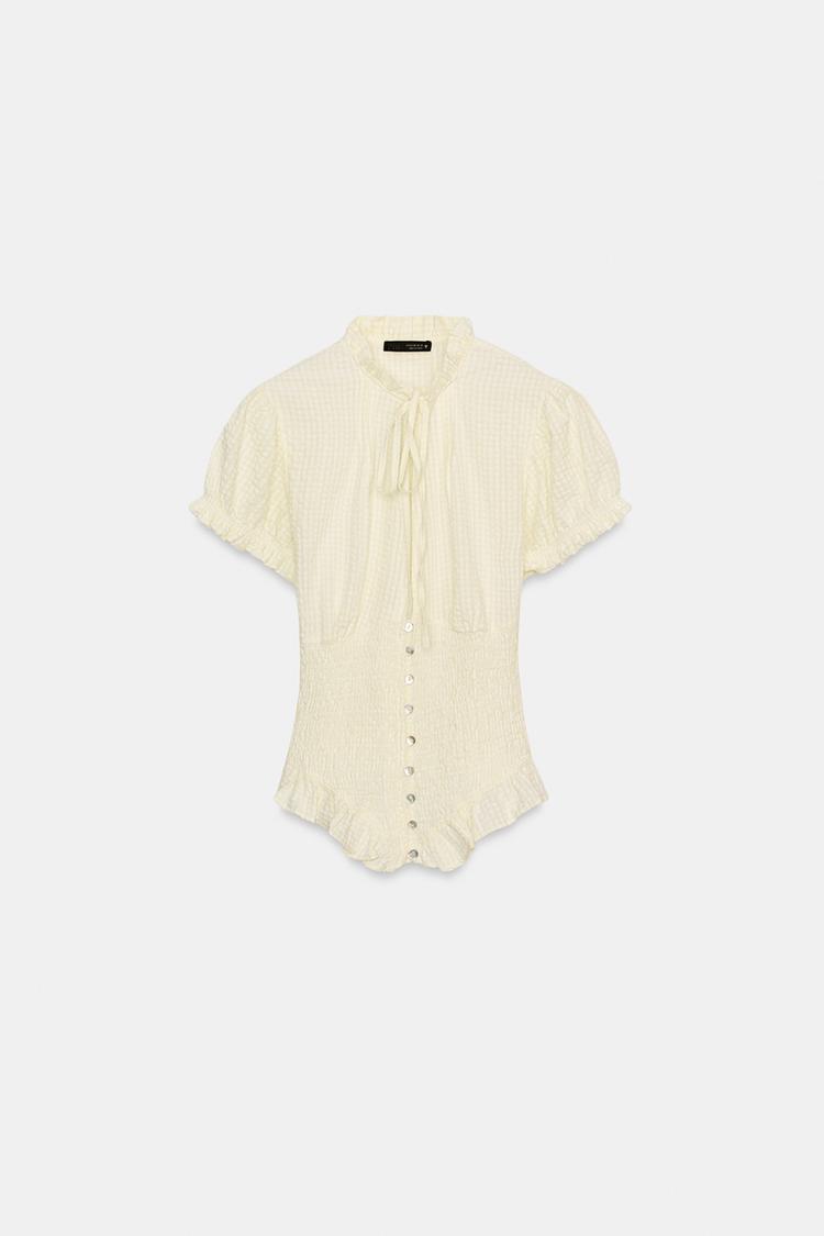 ZARA ТОП ИЗ РЕЛЬЕФНОЙ ТКАНИ С БАНТОМ, ЦВЕТ СЛИВОЧНОГО МАСЛА