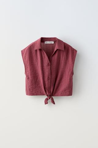 ZARA ТОП ИЗ РЕЛЬЕФНОЙ ТКАНИ С УЗЛОМ, БОРДОВЫЙ