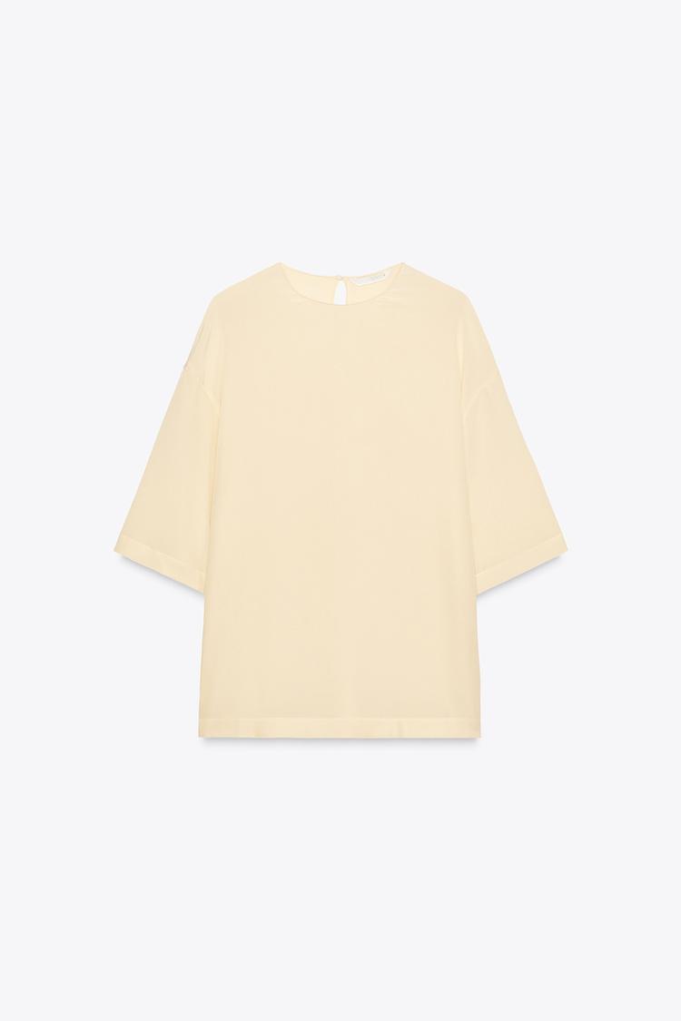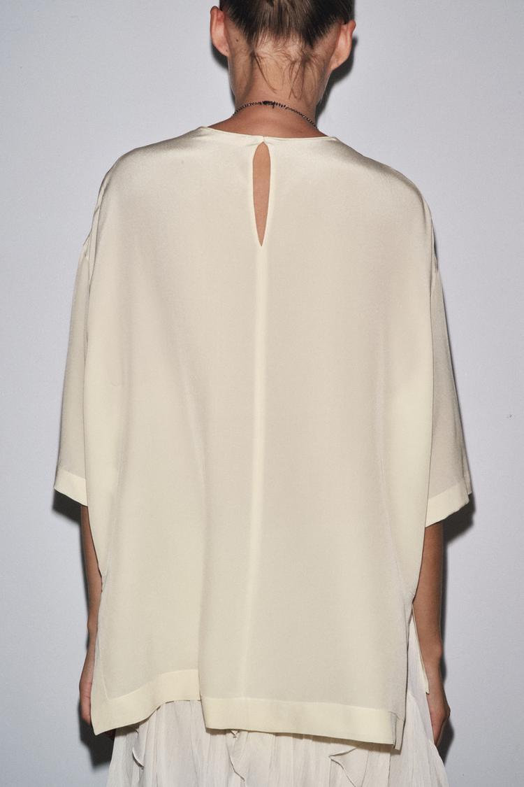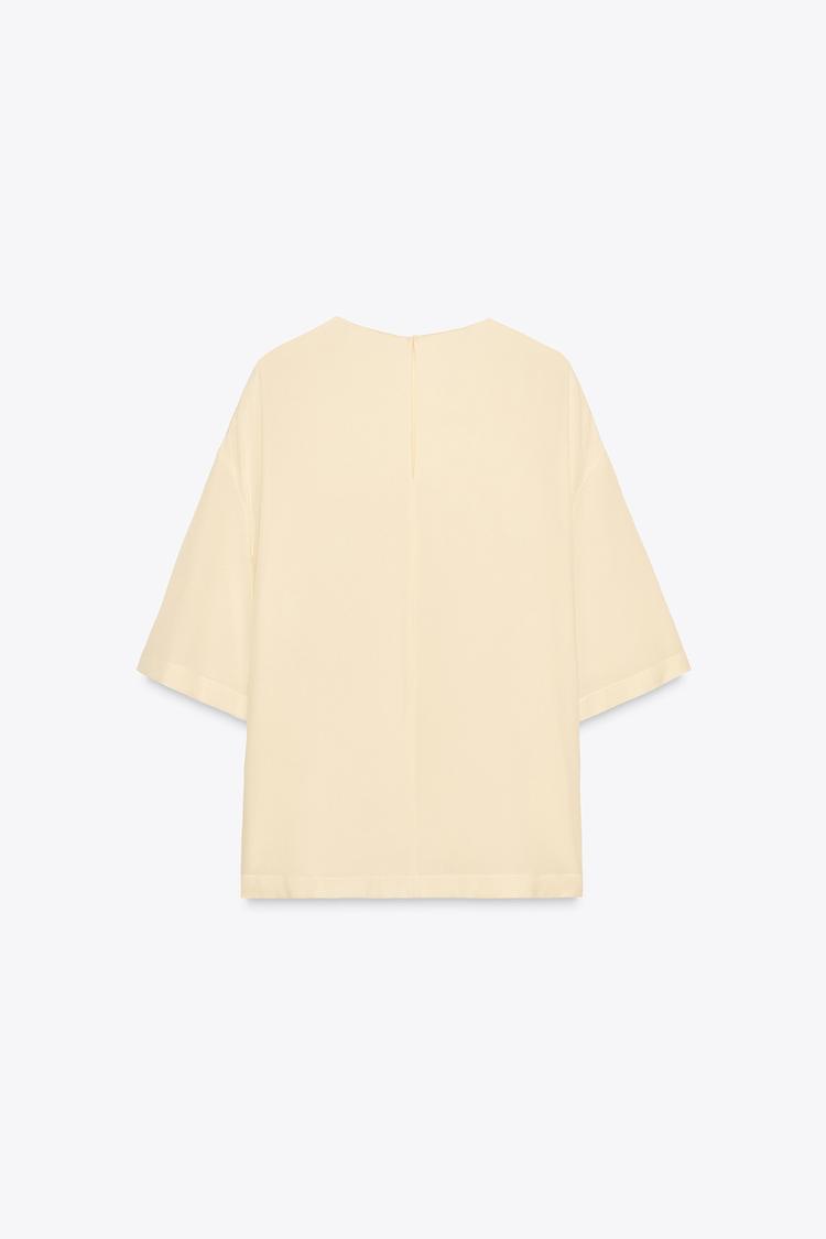 ZARA ТОП ИЗ ШЕЛКА С КОРОТКИМИ РУКАВАМИ — ZW COLLECTION LIMITED EDITION, ЦВЕТ СЛИВОЧНОГО МАСЛА