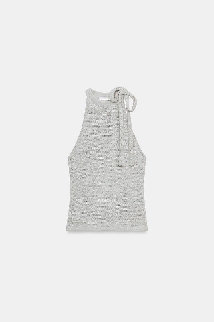 ZARA ТОП ИЗ ТКАНИ С ЭФФЕКТОМ ПОД ЛЕН С ГОРЛОВИНОЙ ХАЛТЕР, ПАСТЕЛЬНО-СИНИЙ