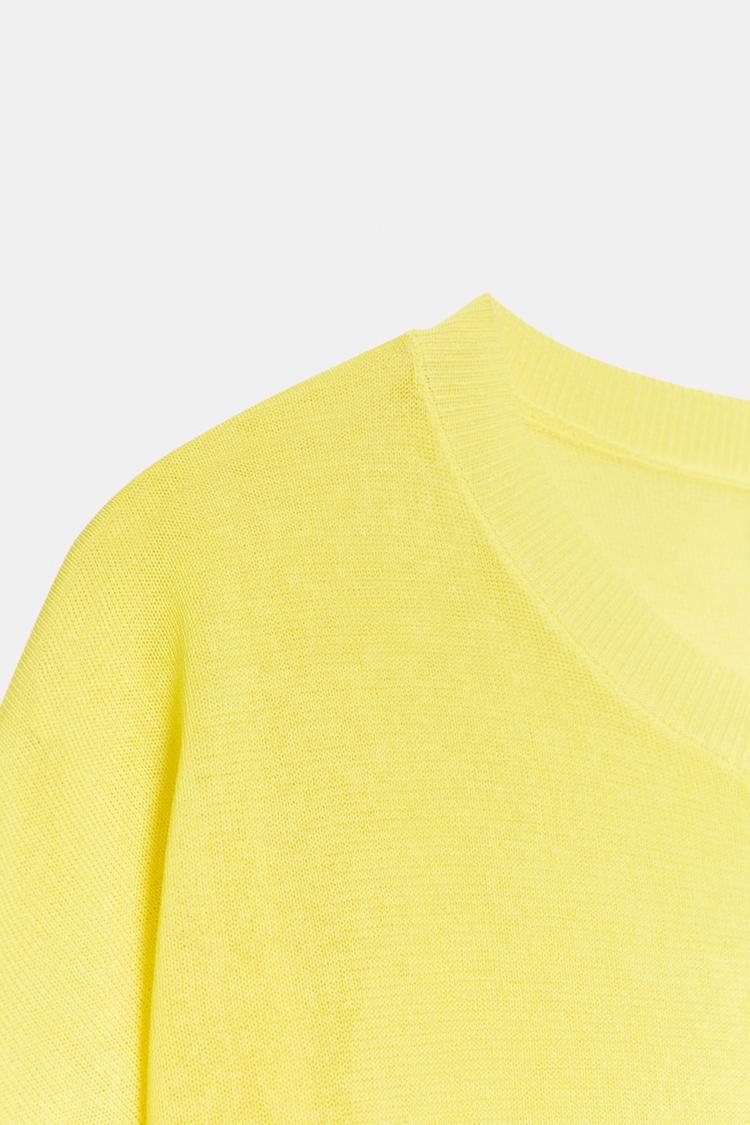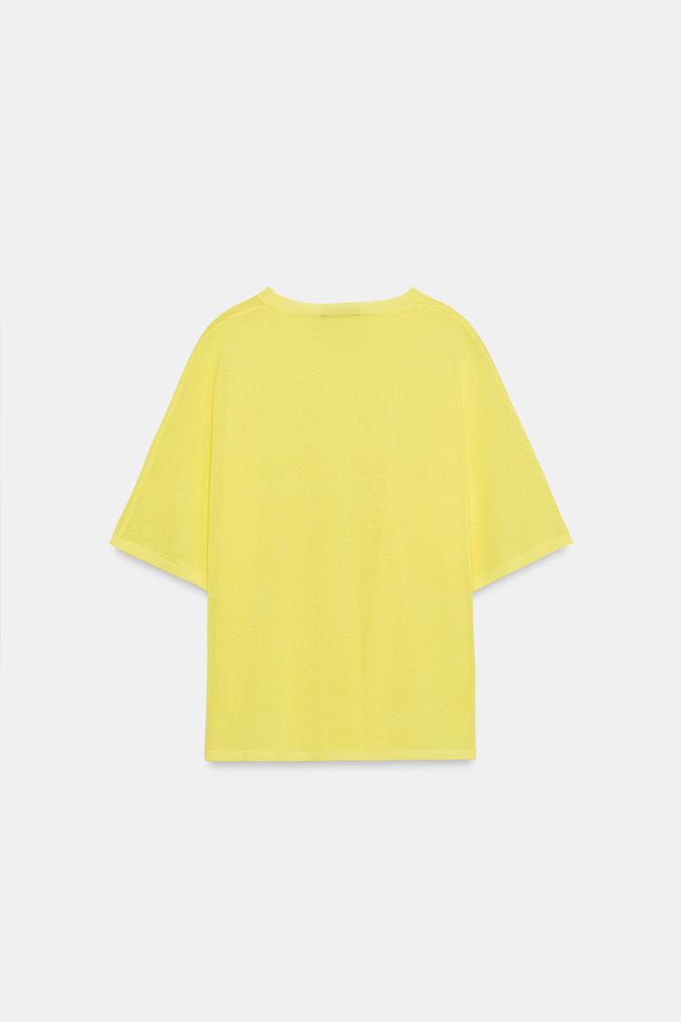 ZARA ТОП ИЗ ТОНКОГО ТРИКОТАЖА С КОРОТКИМ РУКАВОМ, ЖЕЛТЫЙ