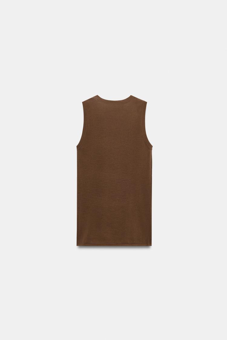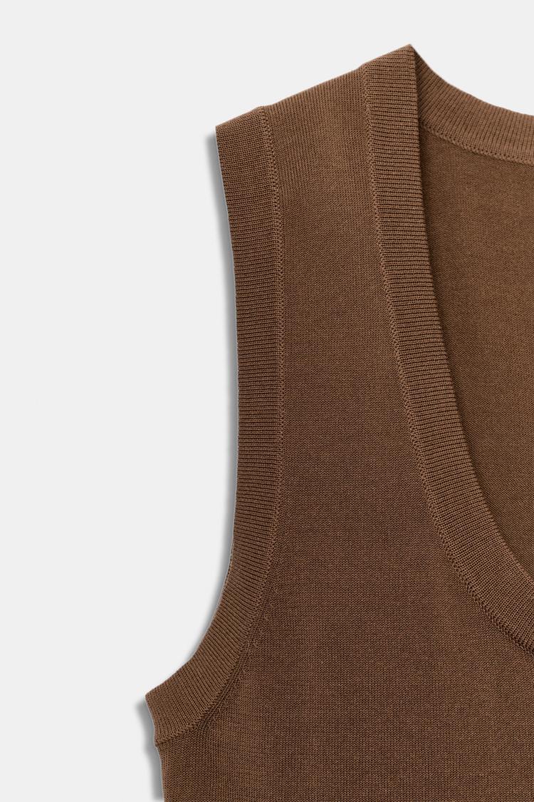ZARA ТОП ИЗ ТОНКОГО ТРИКОТАЖА, СВЕТЛО-КОРИЧНЕВЫЙ