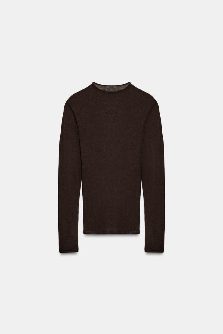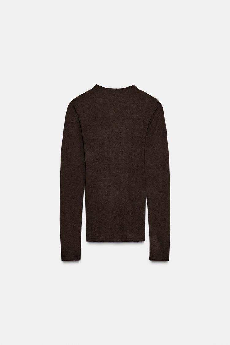 ZARA ТОП ИЗ ТОНКОЙ ШЕРСТИ И ШЕЛКА, КОРИЧНЕВЫЙ