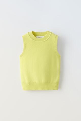 ZARA ТОП ИЗ ТРИКОТАЖА БЕЗ РУКАВОВ, ЛАЙМОВЫЙ