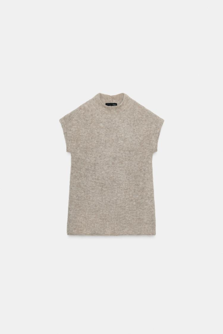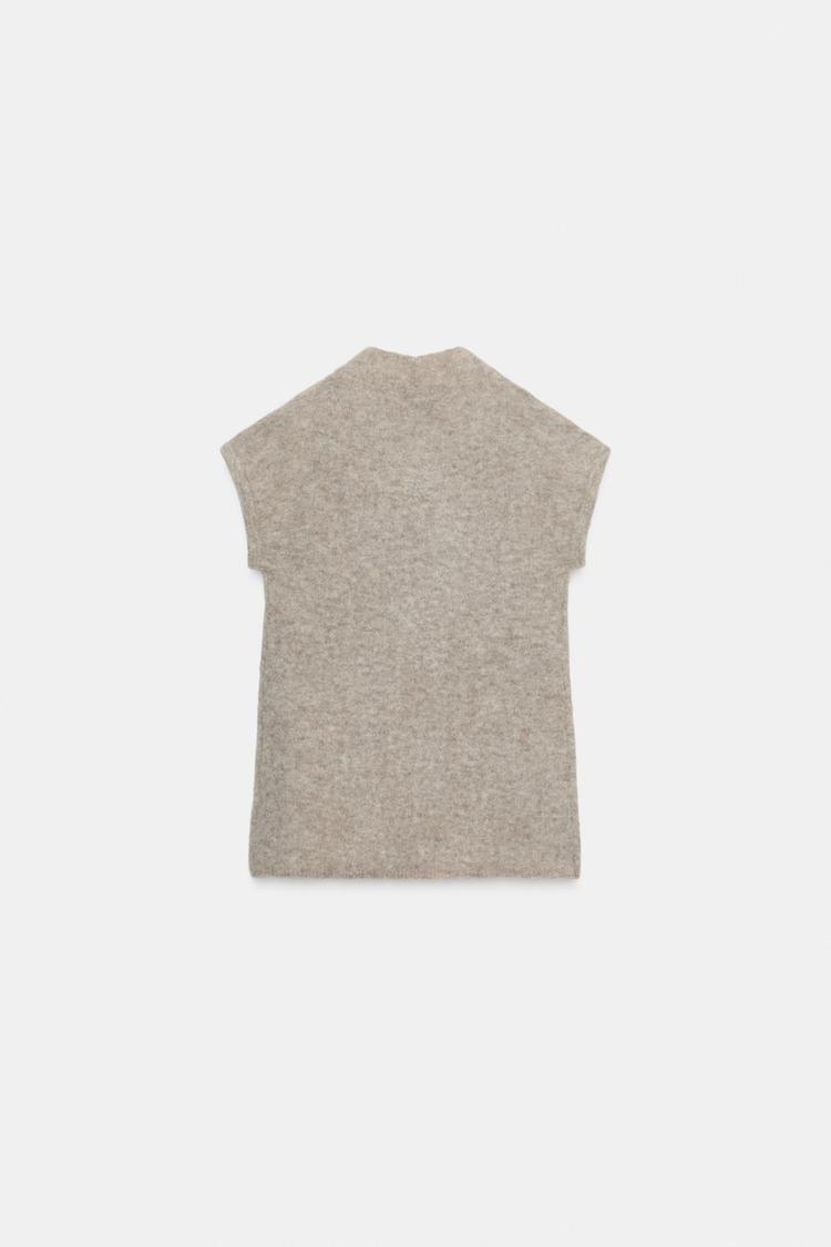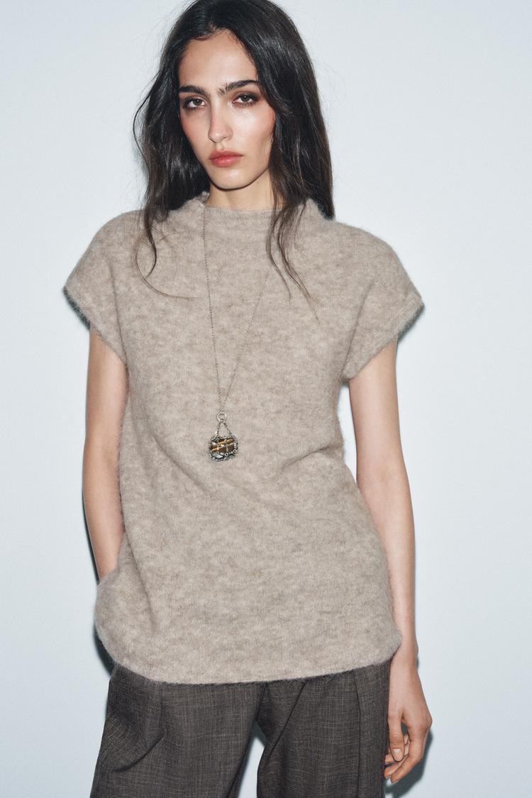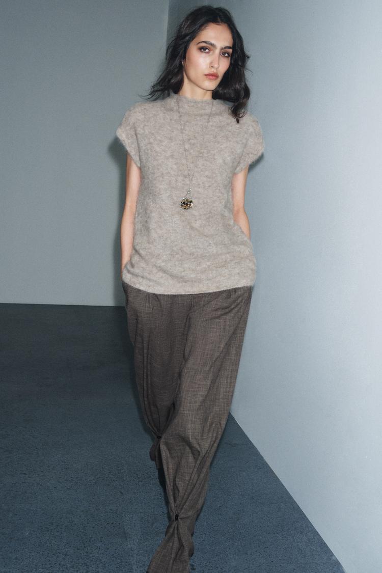 ZARA ТОП ИЗ ВОРСИСТОГО ТРИКОТАЖА С АЛЬПАКОЙ, СЕРО-КОРИЧНЕВЫЙ
