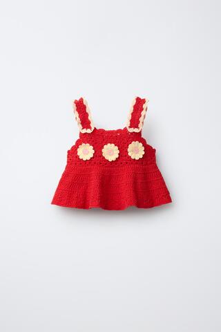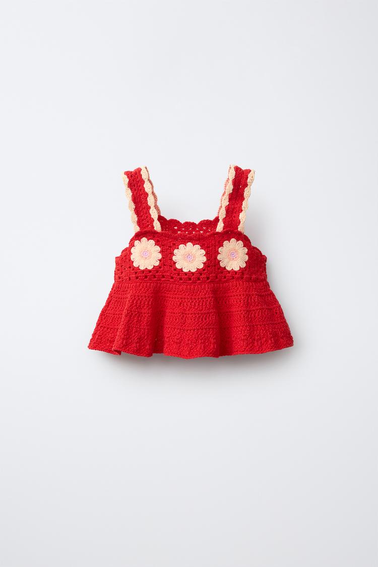ZARA ТОП ИЗ ВЯЗАНОГО КРЮЧКОМ ПОЛОТНА С ЦВЕТАМИ, КРАСНЫЙ