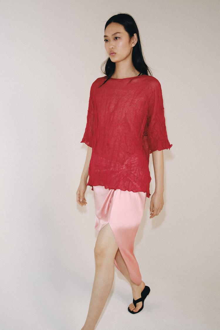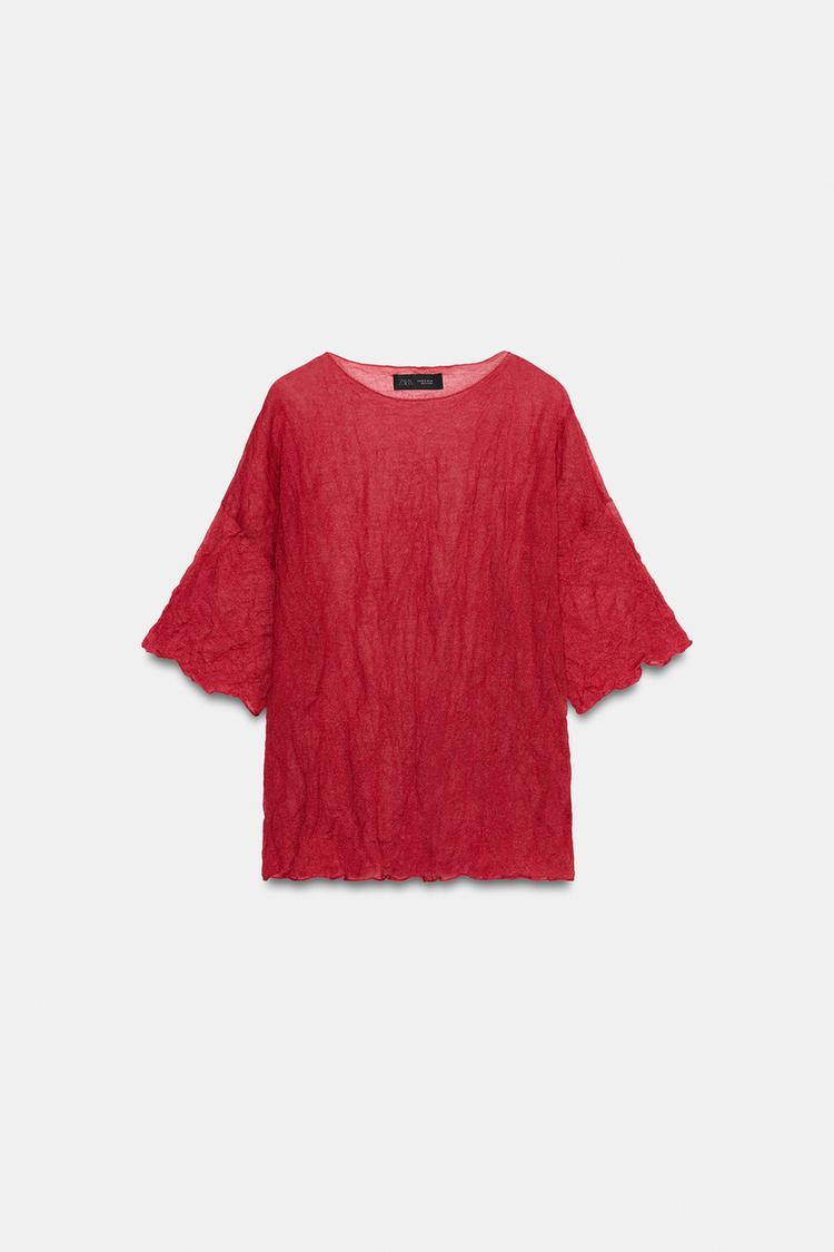 ZARA ТОП ИЗ ЖАТОГО ТРИКОТАЖА, МЯГКИЙ КРАСНЫЙ