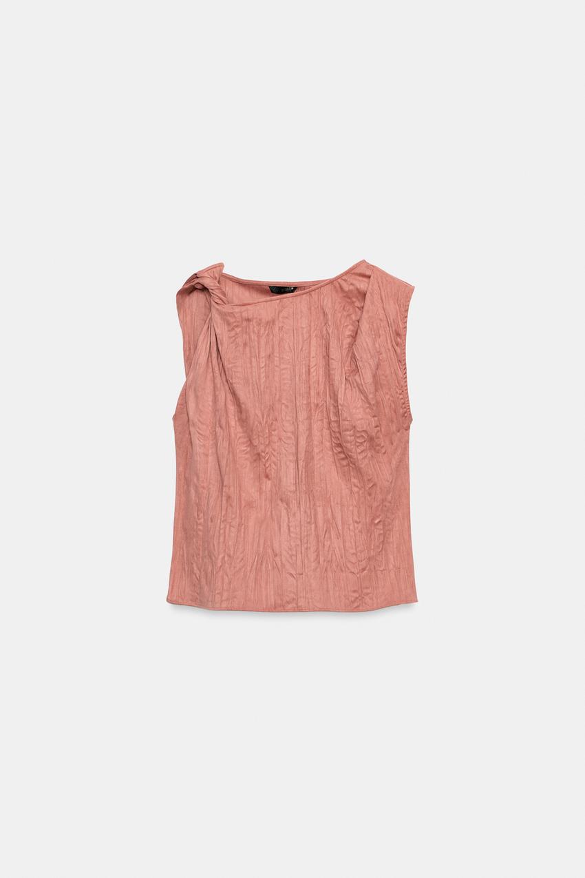 ZARA ТОП ИЗ ЖАТОЙ ТКАНИ С ЭФФЕКТОМ ЗАМШИ, МАРСАЛА