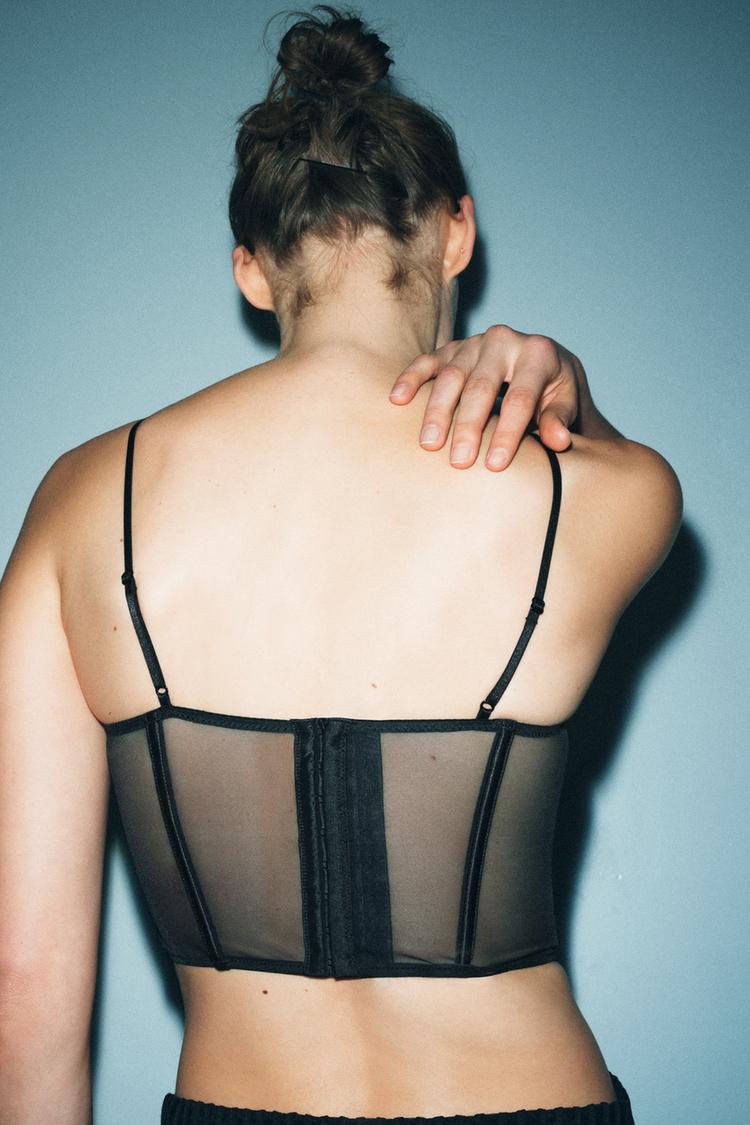 ZARA ТОП-КОРСЕТ НА КОСТОЧКАХ, ЧЕРНЫЙ