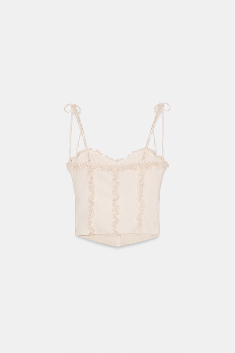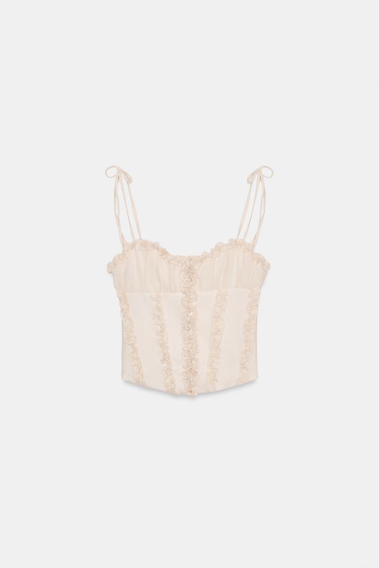 ZARA ТОП-КОРСЕТ С ВОЛАНАМИ, КРЕМОВЫЙ